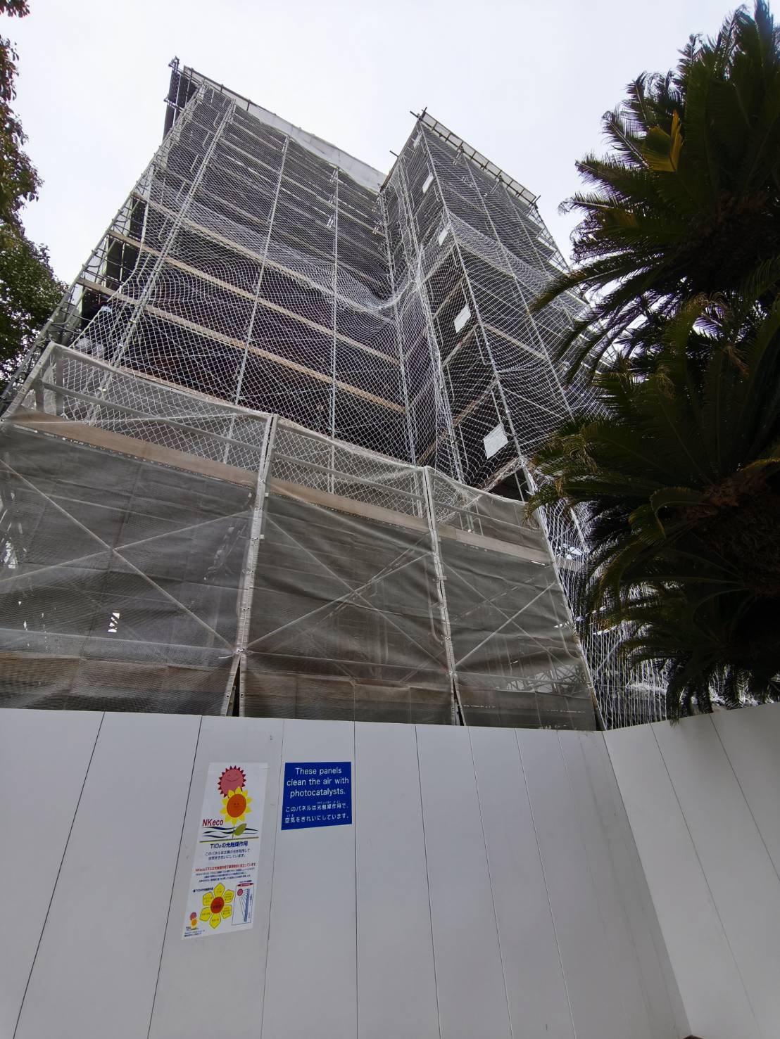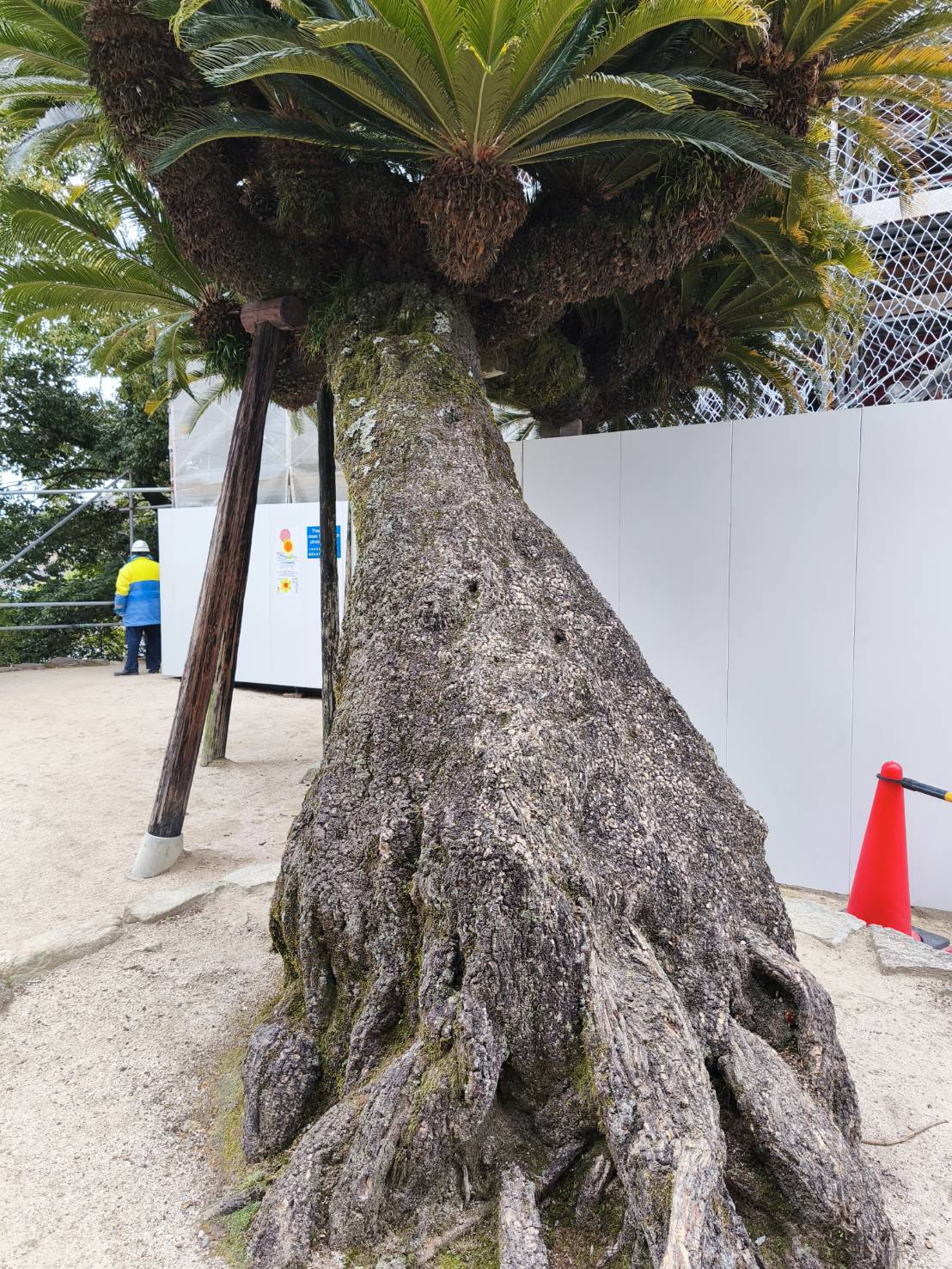 鹿が出迎えてくれました。神様の使い素晴らしい木が五重塔はレアな工事中