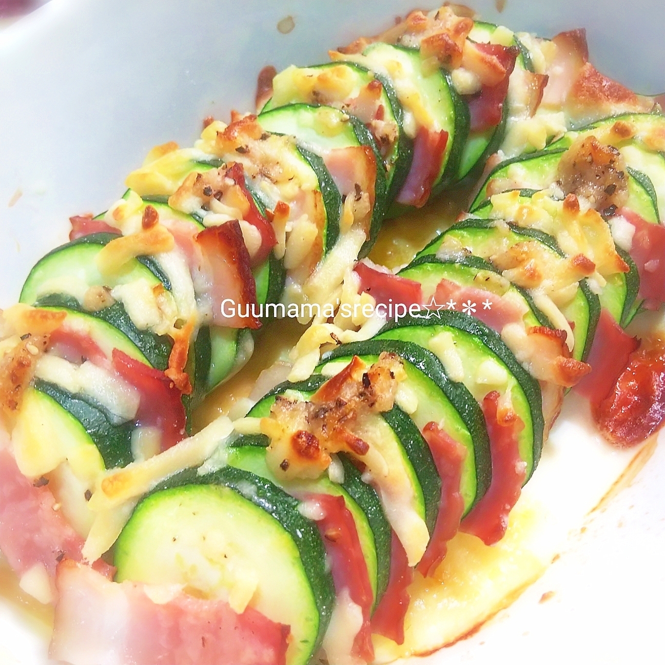 料理名:ズッキーニとベーコンの挟みチーズ焼き
