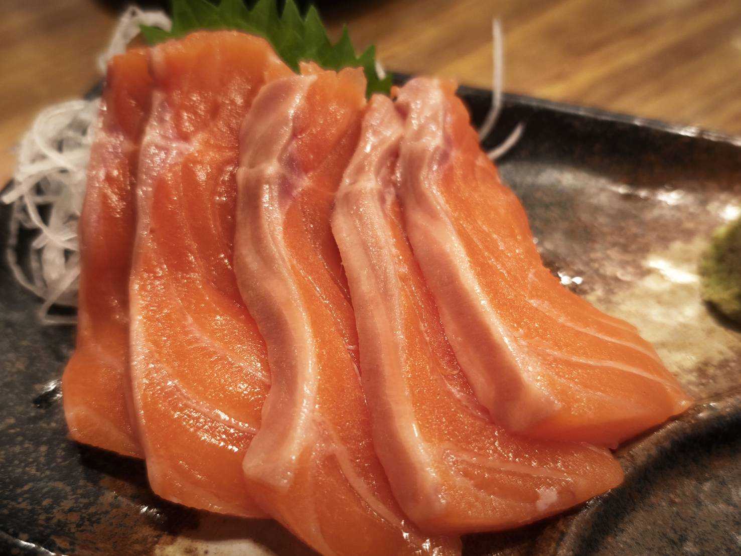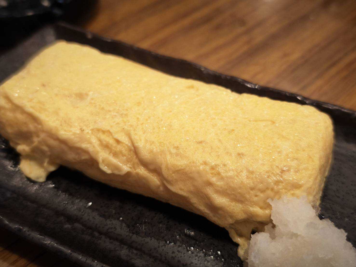 お通しサーモン刺身だし巻き卵天ぷらうどん
