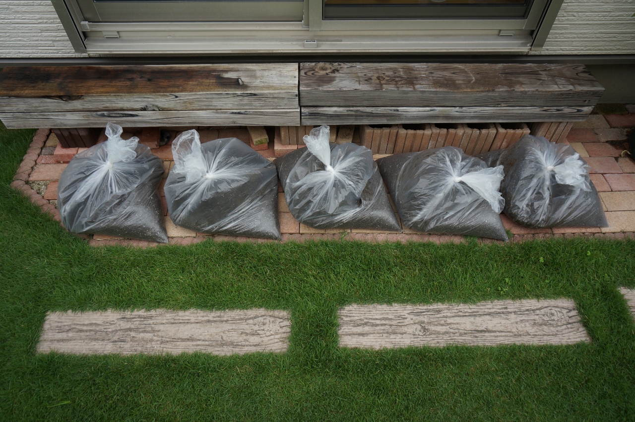 昨年度の土にコフナ(微生物資材)とビオマス(微生物のエサ)を1割程度混ぜています。今年度から混合するピートモスと粒状炭は、定植前に混合するため混ぜていません。