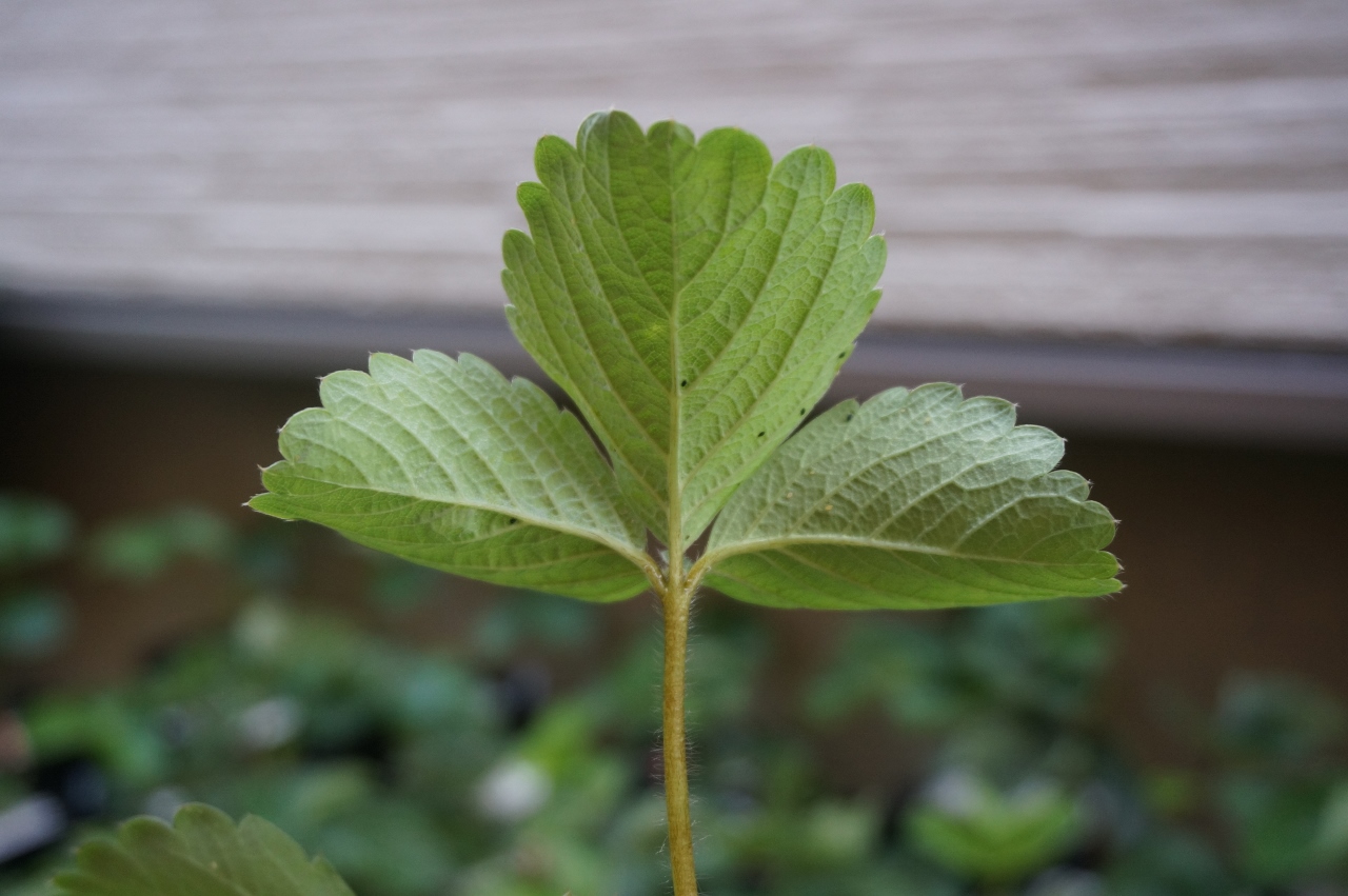 原因はアリです。ランナー発生時に、今年は小遣いをケチってアリ退治をおろそかにした結果です。粘着くんで一網打尽にしましたが、葉に薬害が少しでました(新葉が黒ずむ)。