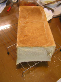 クリスマスに買ってもらった食パンの型。今日初めて使ってみました。どうでしょ。ずいぶんうまく出来たと思うんですけど。