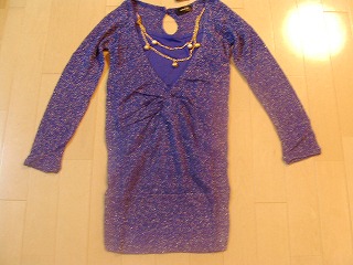 今日も寒かったですね~~仕事中はそれはそれは暑くて七分袖でもキツイんですが・・・ウチの中は寒いのでとうとうコタツだしました~このを買う時、色々な面で相当検討しましたがコタツLOVEな私は 和室熱望しました。畳大好き~・・・どうでもいいですね。さて楽天外ですがホンコンマダムさんのワンコインを買ったのでお披露目しちゃいます!魅惑のラメ☆ラメ美ドレープトップス パープルだそうです(笑)名前は袋に書いてあったまま。。。ちなみにキャミとアンサンブルになってます。でもこれは久々にいいかも~~!!さて全く進んでない交換会ですが母から委託されたものもあるのでUPしますね。インド綿のカシュクールワンピです。以前どこかのワンコインで購入したのですが母がやっぱり着れないというので舞い戻ってきました新品未使用です。タグついたままです。そしてもう1点。ベロアのラメフリルスカートこちらお色はネイビーになります。去年リアル買いしたまましまってありました。タグはないですが未使用です。なんか最近デジカメの画質がよくないな~・・・何かありましたらご質問くださいね!他にもあります。お洋服アクセ、靴などバッグ初めにコチラお読みくださいね。