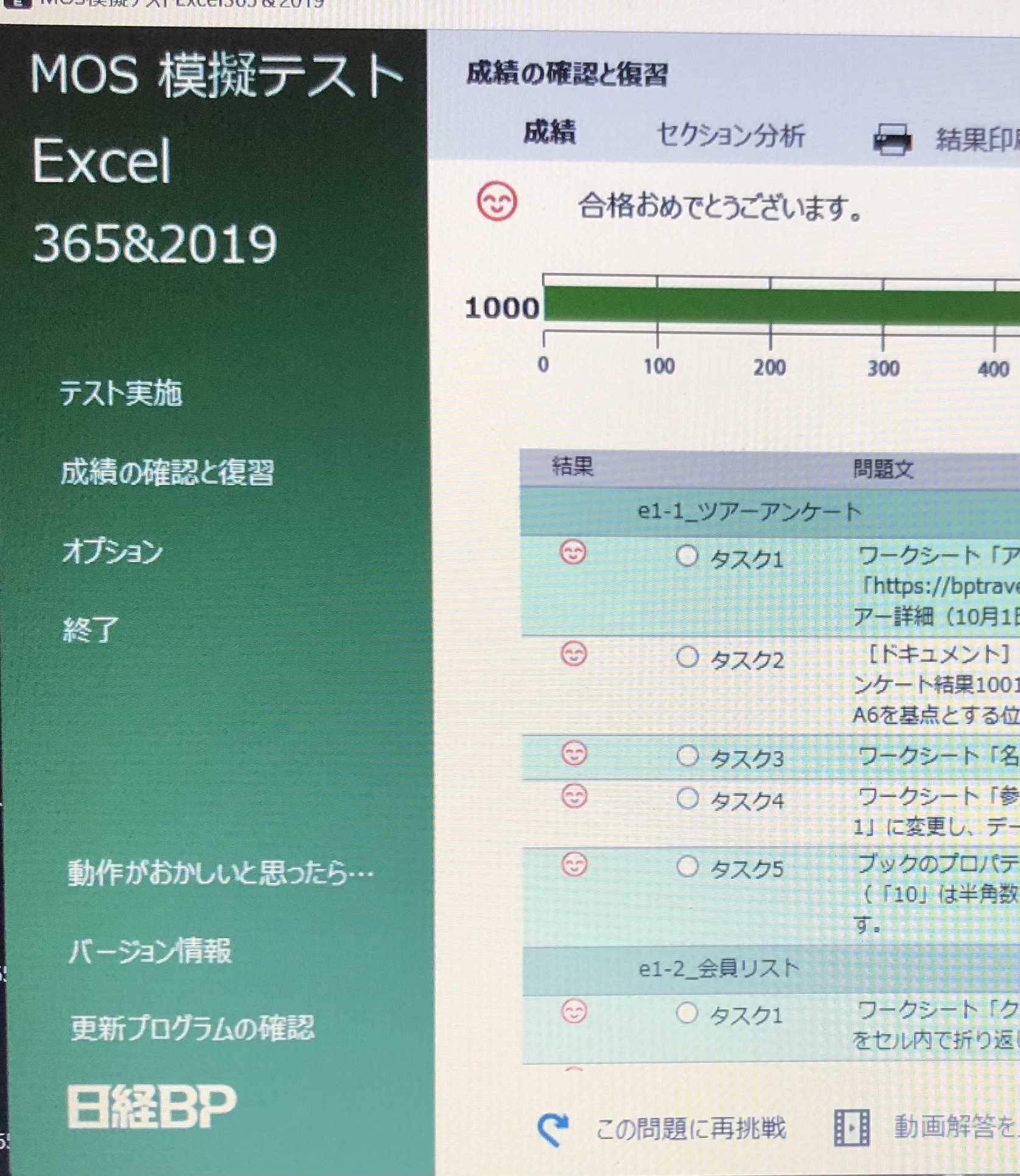 あと少しあと少しでお勉強解放だーーーーーー!MOSExcel模擬試験結果来週試験終われば自由~!←いつも気持ちは自由なのに・・・・・先生が模試試験結果見て「もう試験勉強やめましょう!次コレやった方が良いからやってみよう!」expertの本持ってきやがったΣ(゚д゚;)「あ・・・いや、その」←ヘタレな私ここは地獄の入口?expertって・・・なんやねん