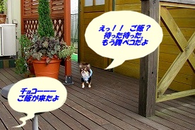 この日5/24はチョコママのBirthdayCongratulationsてことで、ケーキでお祝いって何歳なったんだ? よう分からんけど・・(笑)この日、チョコと久々の大自然ドックランに行って来ました。相変わらずワンコはチョコだけ。広大の敷地に最高の芝。それで何故ワンコが居ないのかが不思議。ってここは放し飼い禁止なんよね~ 極小犬だから良いかなって、オリジナルルールでランしてますけどね。※こう見るとチョコはホント小さいかも。。この日はファミリー連れが多くて、3歳位の子供と一緒にボールでお遊び。。。までは良かったんですが、、子供がチョコに近づいたら「グルーー」って唸り声。そしたら子供が出してしまっのだ※こう見るとチョコも少しは大きく見えるかも。。(笑)チョコは知らん顔ですたこらさっさと別の所に・・・。おい! と言ってもしょうがないか。チョコに代わってそのファミリーに謝ってきたよ。「ごめんなさい」走り放題は良いけれど、、、やっぱワンコの友達も必要かも。その後はチョコと私でしばらく遊んで、撤収しました。ランチはいつものブルーべり農園? ※だったかな~ どうも店の名前が覚えられないのだよ。。今日はベーグルサンドをチョイス。ここのベーグルはモチモチして中々・・・・好みによるかも。帰ってからはいつもの様に皆でバク睡でした(笑)
