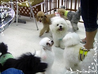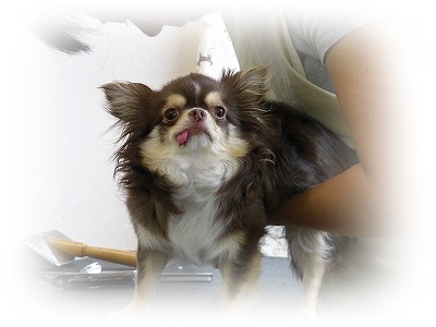 お久しぶりでーす。久々のブログUPです。って最近の書き出しはいつもこんな同じですね今回はチョコのトリミング!!前回やったのが・・・昨年の1月だからな・なんと1年半ぶりです。その間はって?私がトリマーになってカットしてました。でも流石に年に1度はプロのトリマーにカットして貰わないと・・ね~~・~・~・~・~・~・~・~・~久々のトリミングに早くもヘナチョコ。何をされるのか分からず不安顔シャンプ後のこのモジャモジャ毛流石にこれは伸びすぎでしょう~お腹の毛も綺麗にカット。そして1時間位で完了!!どうですか?顔周り、飾り毛、全てスッキリ自分的にはいいと思ってたんだけどチョコママが・・切り過ぎとチョットお冠またすぐ伸びるんだからさ。このSHOPはトリミングを見学出来るんですよ。それも近くでじっくり観察できました~ しかし、チョコは舌はトリミング中ず~~っと出てました・・・・。