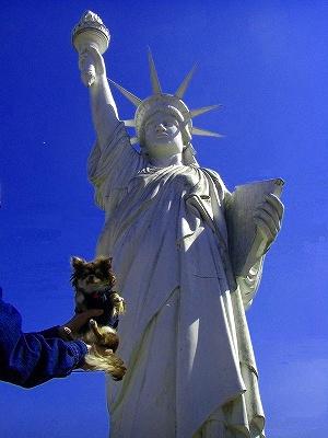 4/29この日も晴天。山桜を探しにドライブがてら山に・・確かにまだ咲いていた所はあるけど・・それより、ビ・ビ・ビックリ↓な・なんと「自由の女神」がここはニューヨークか? そんな分けないかな~んもない所にポツンと女神が、、なんで自由と言うことで場所も自由なのかなまぁ~ 取りあえず青空バックにこの日東の京からチョコのライバルが遊びに来た。久々のご対面最初チョコはメチャ不機嫌そうにしていたけど時間と共にいつもの仲良しに・・・この人ならず犬見知り誰に似たんだかね取りあえずツーショットで フク&チョコ、明日は久々に大自然ドックランにでも行きますか?