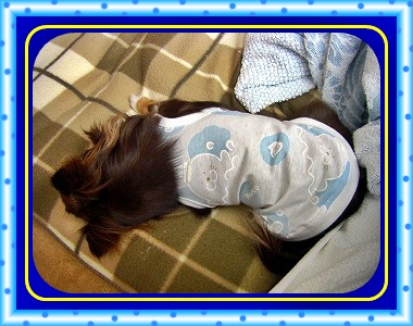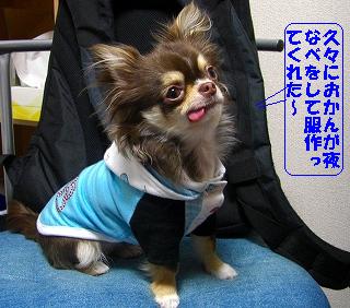 久々に服作ってもらったよ。1チーと1人でおねだり。「そろそろ新作が欲しいな~」の一言から、重い腰を上げたようだ(してやったり)今回は水色をリクエストしてみた。ワンポイントでラインストーンを入れたようだ。。けど、わてには全く分からん。まぁ~ 無いより有った方が良いかも。。自分的にはいい感じと思ってるけど・・・。って、チョコにとっては裸族が一番と思ってるから・・・チョット迷惑な話かも知れないね(笑)今度は夏服も作ってくれると良いんだけどね~ 宜しく。チョコの後ろの写真は、丁度一年前くらいの写真です~メチャ小さく、ねずみの様だ(笑)