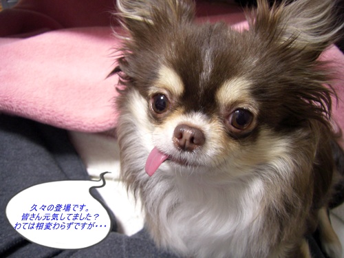 久々の登場です。皆さん元気してましたか?わては相変わらず元気だけど・・・おとんが大変な状況。チョット心配です。 毎晩0:00過ぎないと帰ってこないし、土曜日も出勤だし。こんな生活が3ヶ月も続くと流石にわても心配になってくるんよね~ そのお陰で最近トリミングに連れてってもらってないんだよね更に毎週のシャンプーも・・・ ハァ~たまには早く帰ってきてくださいな!! しかしながら、お菓子を見るとおとんは関係なし。早くお菓子頂だいな~お菓子お菓子、お座りしてるんだからさ~ って感じでチョコは今日も元気です。。