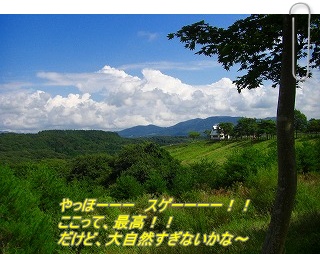 またまた久々のUPです。今回は大自然ドックランならぬ超大自然の公園に行って来ました。見渡す限り大自然で、気分は最高!!しかしながら、ここは自然すぎないかな~ここの公園には「ヤギ」・「馬」・「羊」・・・・ いっぱい居たけど、ワンコ連れが入れない箇所も・・チョコにしてみれば、初の羊。って言うよりワンコ以外初めて見る動物かも。。最初は・・・羊相手に威嚇してたけど、、、やっぱり ヘ・ナ・チョコでした。。 ここの公園はホントに広い。歩くだけでも大変。。。そんな中、チョコのペースが・・・・やっぱり来たか。今日は調子良いな~って思ってたんだけど。ヘナチョコから甘えん坊チョコに変身。ここは良い所だけど、広すぎる。園内は専用バスも有るけど、有料だからひたすら歩いた。。。まぁ~ 帰ってから皆でバク睡したのは言うまでも無い事ですが・・・(笑)