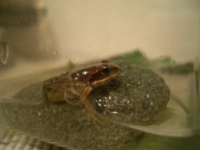 先日、長男がカエルを2匹捕まえてきまして・・・。餌をやるのに意外と苦労させられてます(^^;だって・・・生きているクモとか小昆虫しか食べないとか。こ、こりゃ、大変だっ(;゚∀゚)=3 でも、もう少ししたら捕まえたところに帰すんですwだって、北海道はもう少ししたら冬ですから・・・冬眠させてやらないとねっ♪