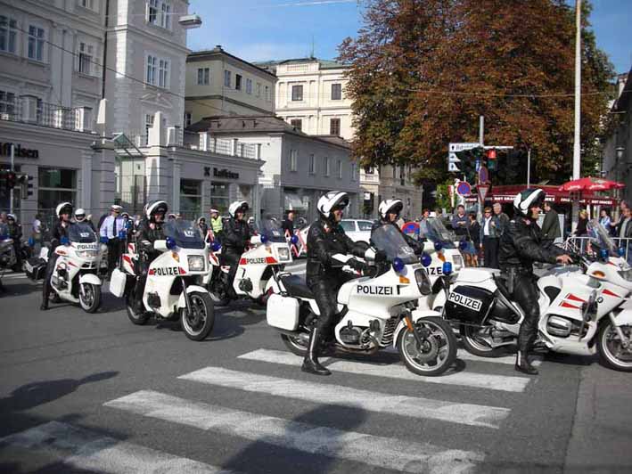 オーストリアのザルツブルクで見かけたBMWの白バイ軍団です。