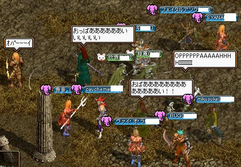 こんばんわ、ザードフィルです。 さて、ギルドHといえば、他のギルドにはないものがあります。 それは・・・・叫びです! 戦前の叫びは他のギルドにはないものです( ゚∀゚)・∵. ガハッ!! まー、まったく知らないギルドさん相手には、さすがに叫びではできませんけどねっ! Hも終盤です。 今月酒さんもそうですが、前回、Hに参加してくれたけじさんこと、けじ三郎さんも今月で引退だそうです。 今まで自分の知り合い何人も引退していきました。そのたびに、何かできるわけじゃないけど、何もできない自分がいます。 今回、酒さんとのH一緒にできました。そして、けじさん、何かできるか考えて・・・・やっぱ、けじさんは戦の鬼でしたから、戦で送ろうじゃないかと。 ダミさん通じて、GPのGMさんとお話させてもらい、けじさんの引退試合にHと組ませて頂きました。 Hでは1つ取り決めをしました。全員、透明を外すこと( ゚∀゚)・∵. ガハッ!! やっぱあれだね。全員ちゃんと見える形で送り出したかったのでΣ(ノ∀`*)レベルひくかろーと、WIZだろーと剣士も弓も全員、透明外して望みました。最後の戦、目に焼き付けてくださいって感じですね。 そして戦開始。 ちょ・・おまいらwww人が一生懸命PT編成考えてるのにwww んでも、適当でOKと言ったのはナイショデス。 GPさんの方、人数少ない中、がっつり組み合ってくれました。 ちなみに、けじさんには透明途中に外してもらいました( ゚∀゚)・∵. ガハッ!! もー、すごいですね。けじさんにめっちゃ集中Σ(ノ∀`*)いあー、うん、悪ノリちょいとすぎたかと心配しましたが、楽しんでもらえたようでよかったです。 さて、イベントギルド「PROJECT H」今月もあとわずか。前回7月にやりました、今回は2度目です。 でも、Hはこれで最後です。今回の最終日でHは解散します。引退した人のキャラ、そのままでとも思ったり、ステギルドとして残しておこうとも思いましたが。 このブログ見た、前回、今回のギルドH参加者は、できれば最終日RSにインしてください。 今日は以上です。