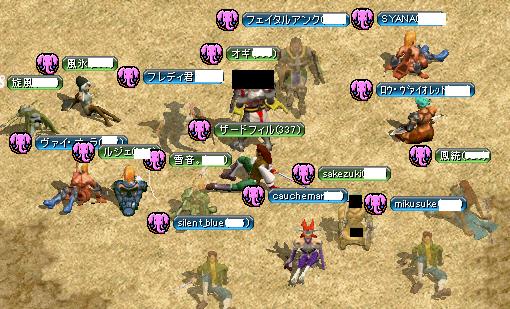 。゜゜(´□`。)°゜。ワーン!! 帰宅11時( ゚∀゚)・∵. ガハッ!! そうそう、最近戦でも狩りでも勝手にPT解散になってしまうことありますね。いつからなんかな?戦中3PT、が3PTともPT解除になったときは正直驚きました・w・ こんばん、ザードフィルです。 ( ゚∀゚)・∵. ガハッ!! 15時にネタに入れたら相手決まってたΣ(ノ∀`*) うん、まじで焦りましたよ。まあ、日曜日なので、そういうこともあるんですね・・Hも人数は8人。相手は7人だったかな? 当然事前情報なしだったので、ちょっとレベル差があったようですね。うん、正直すまないと思ってる。でも、お互いまったく知らないとことやってしかも時間帯が昼間ってのも何気にオツかなとおも。 なんだろ、やっぱ戦って大体聞いたことあるギルドが多いんですよね。いつも入れてる時間帯って。でも、普段まったく入れない時間に入れると、まったく聞かないギルドとできるって新鮮でした。 相手戦士、いきなり始まる前にこっちに来たのには驚きましたがねwなんか、日曜とかたまに、RSしてるーライトユーザーな感じがいいですね。普段、自分も含め、400↑、500↑の人達を廃人乙とか言っちゃってる感じありますが、実際300↑キャラや200↑×2とかも、ライトユーザー、もしくはほんと片手間でしか、RSしない人からすれば、廃人乙なんですよね。 まあ、置いといて。補助ありですが、アスヒで1万回復!!気持ちいいイイイイイイイイイイイ!!!!111111 健康ははっきりいって狩りマゾイです。ぶっちゃけ、戦仕様とかいっても健康1100とか、あんまいりません・w・死ぬときは死ぬし、死なない時はフルポ1個も使いません。でも、このアスヒの瞬間の為に健康やってると言っても過言ではありませn・・・ ・・・・・・ ケホケホ バリアートかくれんぼとかしてました。初めて知りました。叫ぶとこんなんなるのね。H以外の人も参加して遊んでましたΣ(ノ∀`*) やっぱ、のんびりこういうのもいーですね。 ちょっと40分くらいで終わったので連続で・・・ ・・・・・・・・・・・・サバイバル競歩!!! ・・・・武器と盾を外して、歩きます!ひたすら歩きます。 どこがサバイバルかというと・・・ アリアンからダメル目指すのです! そう、デフヒルズ、そしてダメル→の飛びまくる砂漠。デフはまあ、せいぜい、クラゲと蚊が引っかかるか引っかからないかですが、問題は・・・ダメル→のレーザーだす烏賊と、馬ですね。何気に歩きだと追いつかれますし、痛いです。 すっげー時間掛かると思うだろう競歩だけど、実質歩きでもアリアンからダメルって20分なんですよね。 そんな感じで遊んだ週末でした・w・ えーと・・ 読者さんから耳。ありがとうございます。戦のお相手してもらいましたが、めっさ強かったですΣ(ノ∀`*) ありがとうございます。時々更新してます。 社長!!!ww相変らずテンション高いです。 とりとめないですが、今日は以上です。