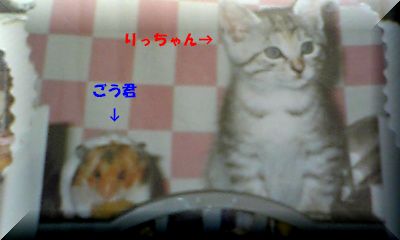 アルバムを見ていたら懐かしい写真が出てきました。アルバムの上からパチリゴウ君(ゴールデン・ハムスター)と、りっちゃん仲良しってな訳じゃなかったんですが、偶然撮れた、可愛いショットゴウくんは、鈴を鳴らして色んな要求をします。種が欲しくて何回も鈴を鳴らしたりその後は、外に出してほしくて出すまで鈴ならし芸達者なハムスターでしたよ~10年前なので、今は思い出の中で。。りっちゃんは、元気いっぱい10才になりました。 ブログランキングに登録してみました。 励みにもなりますので、よかったらポチっとお願いします。 しばらくコメントを閉鎖しております。皆さまのブログに足跡つけて楽しみに読ませていただいてます^^