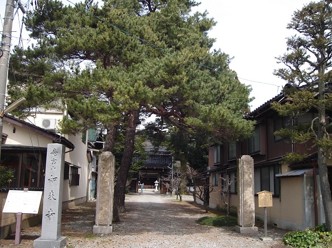 金沢散歩(15) 寺町寺院群 その2 西方寺、瑞泉寺、極楽寺、伏見寺2015年2月13日更新金沢散歩(14)、寺町寺院群、妙立寺(忍者寺)、願念寺、本長寺、妙慶寺に続けて、西方寺、瑞泉寺、極楽寺、伏見寺をご紹介します。70寺あまりのたくさんのお寺が有りますが、ご紹介できるのはごく一部となりますこと、ご了承お願いします。[天台宗 西方寺]加賀藩主 前田利家の六女、菊姫の菩提寺です。菊姫は天正12年(1584年)にわずか7歳で亡くなってしまいました。利家は金沢入城の時、菊姫の供養を願い、親交のあった比叡山の僧 盛尊和尚を金沢に招き金沢城付近に西方寺を建て、菊姫の位牌と肖像画を奉納しました。西方寺は藩政時代から金沢に伝わる全ての霊場に指定され、パワースポットとして現在も信仰を集めています。[西方寺 本堂]私が訪れた時は誰一人いなくて静かでした。左手には動物霊苑が有ります。[西方寺 良縁結実稲荷神]お参りすれば、良縁 縁結び 恋願い 恋愛成就にご利益が有るそうです。[西方寺 右の稲荷神]確かに、しっかりと願いを聞いて下さりそうな姿です。[西方寺 左の稲荷神]口にくわえているのはお経の巻物でしょうか。 [真宗大谷派 瑞泉寺]寛永年間(1624〜44)建築。越中井波の瑞泉寺の親戚寺です。親鸞聖人御真影、蓮如上人御真筆名号および触頭文書を含む数多くの古文書が残されています。[瑞泉寺 本堂]なんとなく心が落ち着きます。[瑞泉寺 彫刻]軒先の彫刻が怖いです。魔から守っているのでしょうね。[浄土宗 極楽寺]現在、京都総本山知恩院の直轄寺院だそうです。後醍醐天皇の皇子、明心仏眼法親王による創建。明心仏眼法親王は幼い頃から仏教に興味を示し、8歳で出家。比叡山の厳しい修行に耐え第百二十三代天台座主の地位にまで登りつめました。しかし、後醍醐天皇が足利尊氏に敗れると同時に、親王も地位を追われ各地を転々と逃げまわっていました。越中(現富山県)に身を隠していた頃、目竜上人という浄土宗の僧と出会い、その教えに感銘し寺を作るきっかけとなったそうです。皇室ゆかりの寺院として朱塗りの欄干は格調の高さを表しています。また、本堂や瓦には菊のご紋が使われています。[極楽寺 本堂] [曹洞宗 松月寺の大桜]国指定天然記念物。樹齢400年、東西20m、南北15mに広がる大桜です。土塀を破って巨大な幹が歩道に飛び出しています。この桜は、同寺中興の至岸和尚が、三代加賀藩主前田利常から拝領したと伝えられています。花の時期の写真では無くて申し訳ありません。[松月寺の大桜 幹]年月を感じさせます。お世話も大変でしょうね。[松月寺の大桜 幹]上の写真の反対側です。幹が土塀を乗り越え、必死に這い出ようとしてもがいているようです。[高野山真言宗 伏見寺]「金沢」という地名由来にまつわる芋掘り藤五郎が建立したと言われています。芋掘りをして暮らしていた藤五郎は、観音様のお告げにより、美しい和子(わご)という娘を妻にしました。ある日、2人は砂金を見つけ、沢の水で洗います。この時の沢は、のちに「金洗いの沢」と呼ばれました。前田利家がこれにちなんでこの地を「金沢」と名付けたそうです。現在「金洗いの沢」は「金城霊沢」と改名され、今でもこんこんと水が湧き出ています。芋掘り藤五郎のお話をご紹介します⇒芋掘り籐五郎物語[伏見寺 芋掘り藤五郎像]和子さんも一緒に作ったら良かったのに。[伏見寺 芋掘り藤五郎のお墓][金城霊沢(金洗いの沢)]兼六園の近く、金沢神社の横にあります。[金城霊沢(金洗いの沢)の湧き出る水]☆☆☆ 金沢の旅館 ホテル ご紹介☆☆☆ [金沢駅周辺] [金沢繁華街]・[中心街]・[中心をやや離れた宿]☆ホームでは、石川県全域のお宿をご紹介しています。どうぞきまっし石川→ホームへ戻る