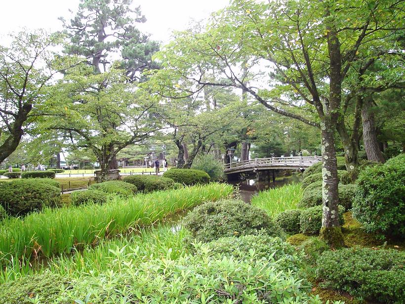金沢散歩(4) 兼六園2 2015年2月1日更新[花見橋]橋から見る季節の花の眺めがすばらしいことから、この名前がつきました。写真撮影の時期はあまり花が咲いていませんでしたが、緩やかに流れる小川に沿って、季節により、桜、カキツバタ、サツキ、ツツジなどが咲き誇り、多くの人を魅了します。特に5月に満開を迎えるカキツバタの姿は名物の一つ。この他、夏の緑陰、秋の紅葉、冬の雪景も見逃せません。ここにカキツバタが咲き誇ります。[雁行橋(がんこうばし)]11枚の赤戸室石を使用し、雁が夕空に列をなして飛んでいく様をかたどった「雁行橋」。石の一枚一枚が亀の甲の形をしていることから「亀甲橋(きっこうばし)」とも言われ、この橋を渡ると長生きするとされてきましたが、現在は石の磨耗が著しいため、通行できなくなっています。 [園内]いたるところに水の流れが有ります。 [時雨亭]時雨亭は、はじめ5代藩主・前田綱紀(つなのり)により建てられ、「蓮池(れんち)御殿」「蓮池御亭(れんちおちん)」と呼ばれていました。その後、明治の初めまで補修しながら存続していましたが、現在の時雨亭は、平成12年(2000)に長谷池のそばに復元したものです。茶会や庭を眺めながら休憩できる場所として外国の方も多く訪れます。[時雨亭横のトイレ]なかなか趣きのあるトイレです。[明治紀念之標]明治13年(1880)日本で最初に建てられた銅像。西南戦争で戦死した郷土軍人の霊を慰めるものです。中央に日本武尊像、左に石川県戦士尽忠碑が有ります。両脇に植えられた赤松は「手向松(たむけまつ)」と呼ばれ、当時、京都の東西両本願寺の門跡から移されたものです。[梅林]3月頃に最も賑やかになる場所です。この梅林は昭和43年(1968)に明治百年記念事業として全国の名梅を集めて造られ、平成12年(2000)3月に庭園として再整備されたものです。広さは約3000平方メートル。梅の木は約200本。白梅約130本、紅梅約70本で、白加賀、摩耶紅梅、青軸、八重寒紅など約20種類が咲き誇ります。[瓢池(ひさごいけ)と翠滝(みどりたき)]瓢池は園内で最も古い時代に作庭されたと言われています。池の中程がくびれて、瓢箪のような形をしていることからこの名前が付けられました。池の中には不老長寿の島、神仙島をかたどった大小二つの島があります。池の中島に建つ、六重に重ねられた塔が「海石塔」です。写真奥の翠滝は霞ヶ池から流れ出て瓢池に注ぎ込む滝です。高さ6.6m、幅1.6mで水量が豊富、滝音も大きく、目と耳を楽しませてくれます。その荘厳さと迫力は他庭にはないスケールで、兼六園の中でも特に優れた庭景の一つです。別名「紅葉滝」とも呼ばれます。[瓢池の鯉たち]覗きこむと挨拶に来ます・・・次回は21世紀美術館をご紹介しますね。ではまた。[金沢21世紀美術館へ]☆☆☆ 金沢の旅館 ホテル ご紹介☆☆☆ [金沢駅周辺] [金沢繁華街]・[中心街]・[中心をやや離れた宿]☆ホームでは、石川県全域のお宿をご紹介しています。どうぞきまっし石川→ホームへ戻る