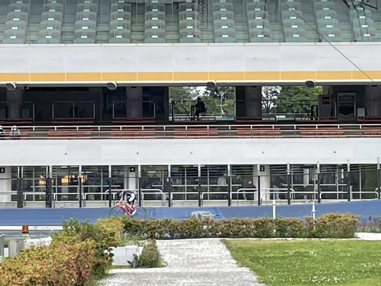 昼近くまで降った雨も上がり、予定通りバンク練習に参加。天気が悪かったため参加者が少なかったのは残念。風も弱く適温でまたとないコンディションだったのにね。いい汗かけた。