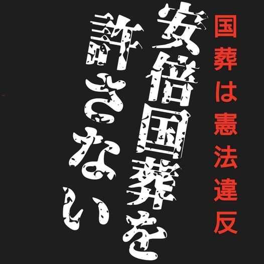 国会の審議を経ることなく決められた、法的根拠のない憲法違反の国葬に反対する。安倍晋三は長年にわたり憲法を無視し、国政・国費を私物化し、国会で100回以上もの嘘をつき、国民の生活と民主主義を破壊した。史上最低最悪の首相であり、もっとも国葬に相応しくない安倍晋三を追悼しない。