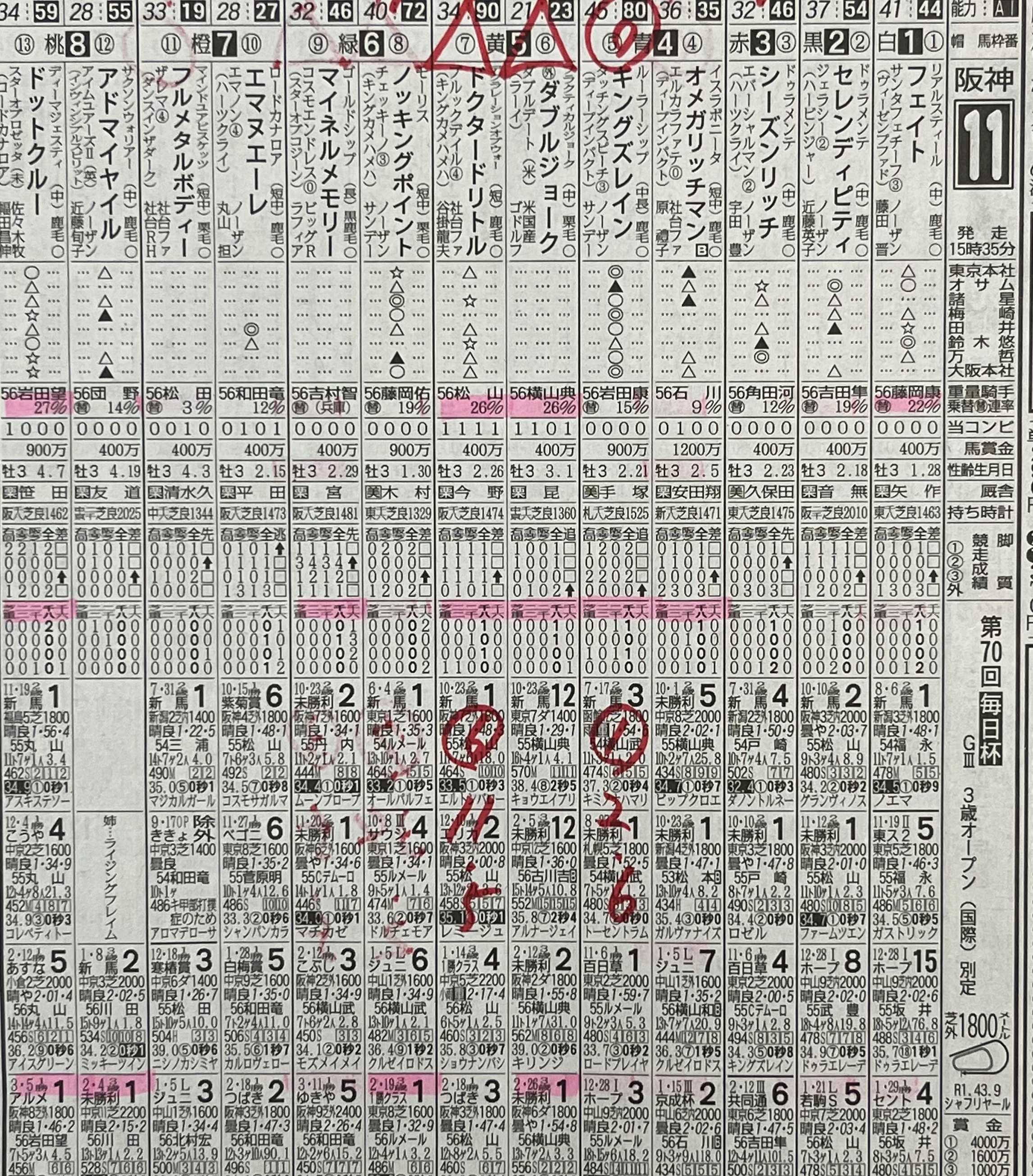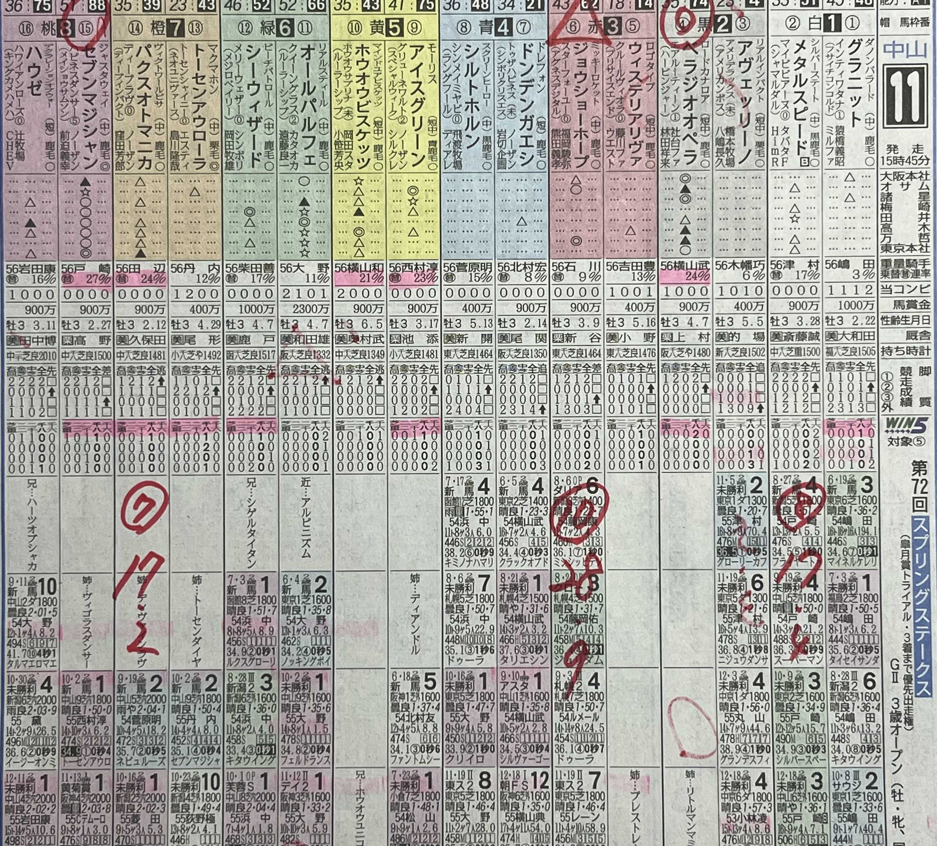 3歳のレースは実績が少なく、馬券は絞りにくい。過去5年で1番人気は4度3着以内に入っていることから④ベラジオオペラを軸に、穴で⑥のジョウショーホープへ。馬連4=6と馬単4-6の2点。
