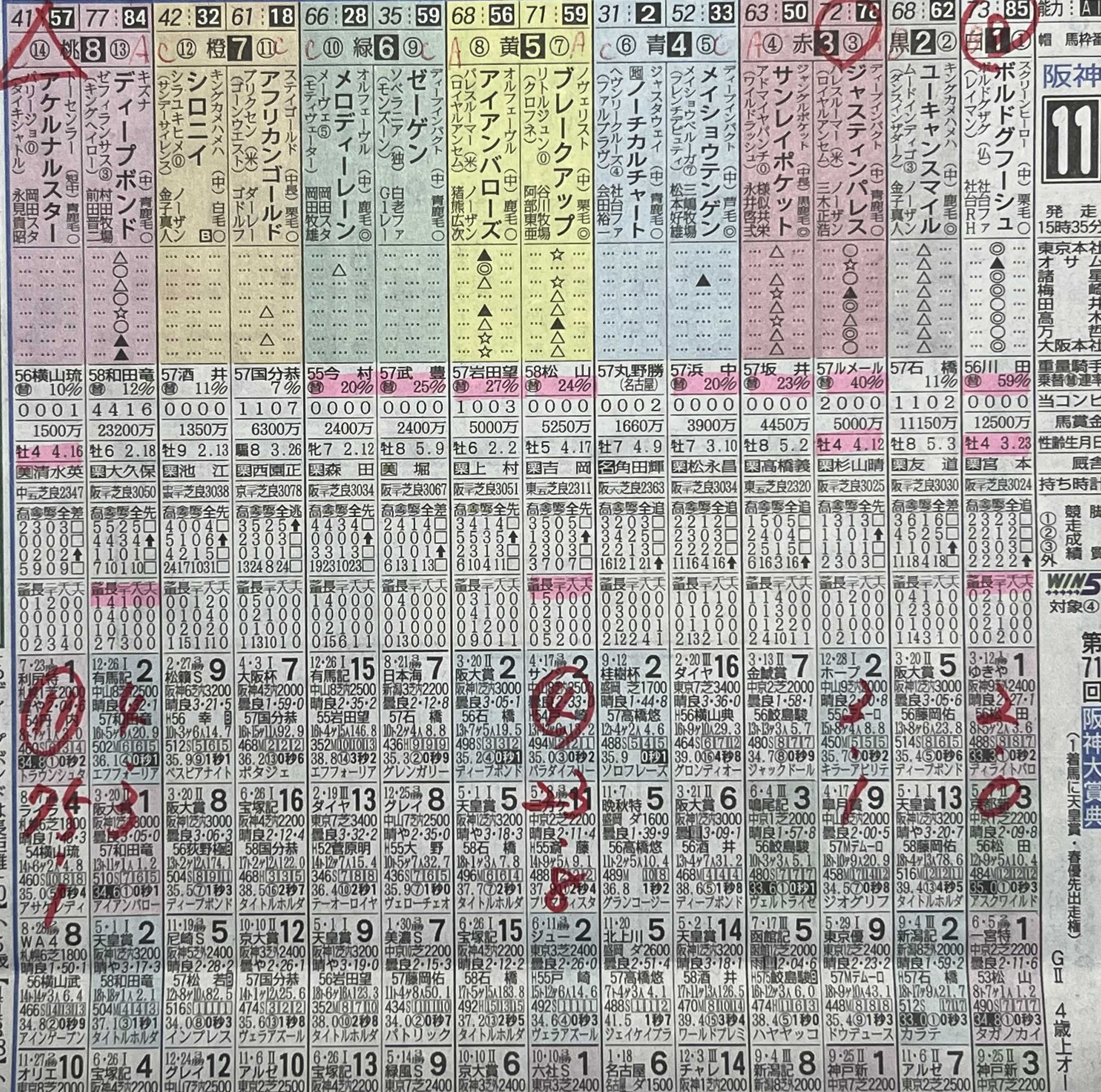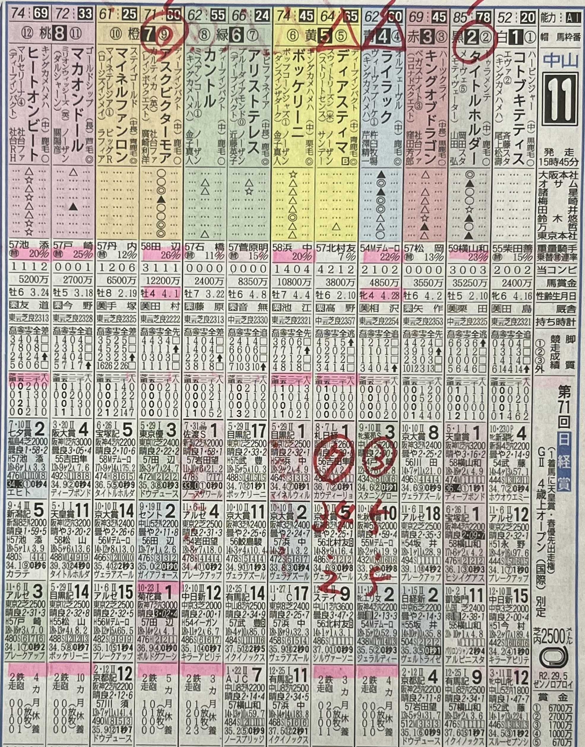 オッズを見ると3頭が抜けていて3連単でも10倍以下があるとは驚き。1頭は伏兵が入るとみて、4歳の⑭アケルナルスターを選択。馬券は馬連1=14、3=14、3連複①③⑭。