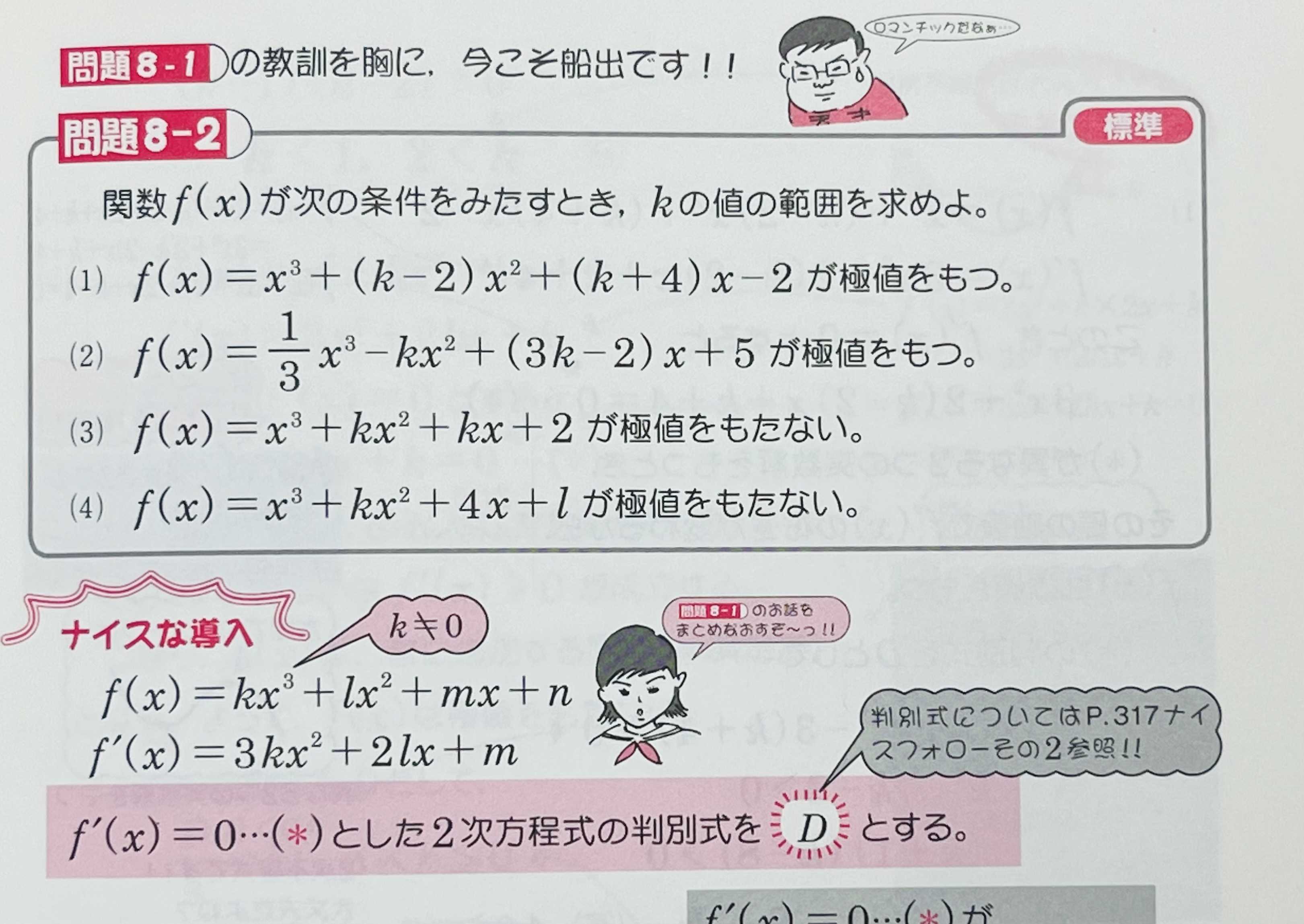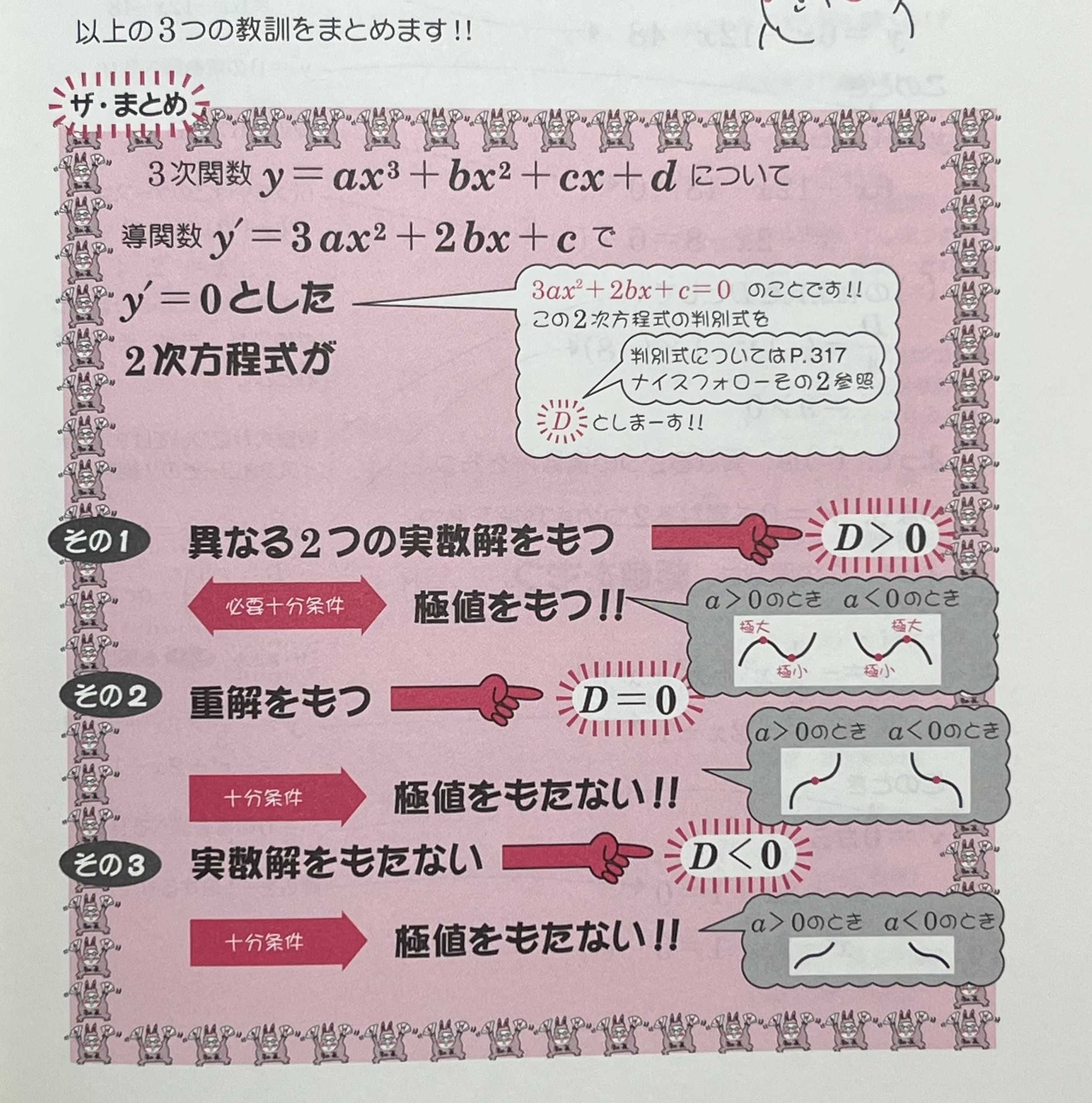 極値の続き。持つか持たないかは判別式Dで判断。どうも下の図がおっぱいに見えて仕方がない。