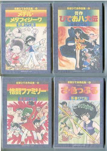 「吾妻ひでお作品集 全4巻揃い メチル・メタフィジーク/贋作ひでお八犬伝/格闘ファミリー/ザ・色っぷる」吾妻ひでお奇想天外社・奇想天外コミックス(B6判)昭和55年発行の初版並;紙カバーのため角・フチ部少スレ、(1)表紙左上角部極少折れ、(3)背上痛み・本文上角部若干折れ、(4)表紙しわ・カバー裏しみ汚れ有・裏表紙右端上下部少しわ・本文下角部若干折れ販売価格=3,900円(背表紙)(2022/01/02現在の在庫・価格です)===========================<お問合せ先>絶版漫画バナナクレープ〒542-0066 大阪市中央区瓦屋町2-10-14 第三天偉ビル4階TEL 06-6765-7144HPアドレス http://www.bananacrepe.net/e-mail bananacrepe@mbk.nifty.com営業日・時間=平日 14:00~20:00/日・祝日 12:00~20:00/水曜定休」