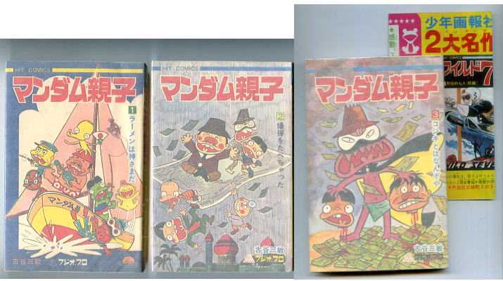 「マンダム親子 全3巻揃い *元版 *(3)チラシ付(ヒットコミックス&キングコミックスのチラシ)」古谷三敏(フジオプロ)少年画報社・ヒットコミックス(新書判)昭和46年発行の初版、(3)チラシ「ヒットコミックス&キングコミックス」のチラシ)付並;(1)(2)貸本上がり、(3)カバー上フチ部少しわ・背上角部極少イタミ・背下極少しわ・小口少汚れ・背表紙少ズレ・裏表紙右上部若干折れ、チラシの上角部少折れ *元版です *「週刊少年キング」連載 *3冊とも背表紙の色はクッキリ残っています販売価格=19,000円(2022/09/15現在の在庫・価格です)3巻の表紙よ、、、、===========================<お問合せ先>絶版漫画バナナクレープ〒542-0066 大阪市中央区瓦屋町2-10-14 第三天偉ビル4階TEL 06-6765-7144HPアドレス http://www.bananacrepe.net/twitter https://twitter.com/bananacrepeZe-mail bananacrepe@mbk.nifty.com営業日・時間=平日 14:00~20:00/日・祝日 12:00~20:00/水曜定休