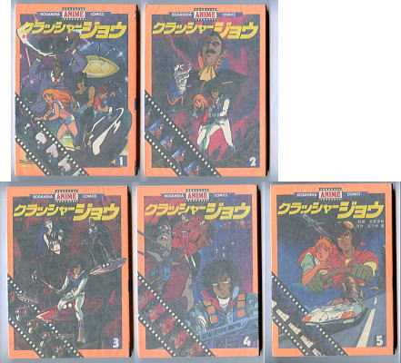 「クラッシャージョウ 全5巻揃い」 *フィルムコミック高千穂遙/原作・脚本・監修 安彦良和/監督・脚本・キャラクターデザイン講談社・アニメコミックス(B6判)1983年発行の初版並;背上少しわ、カバー上フチ部極少しわ、角部極少しわ、(5)の背表紙に少くすみジミ有、(4)裏表紙右上部から本文後半上角部少折れ *同年公開の日本サンライズ製作の劇場アニメのオール4色カラーのフィルムコミックです *静止画ですので、ダーティペアや吾妻ひでおキャラやハンター等がじっくり見られます *背ヤケしやすい本(オレンジ色)ですが、背ヤケはありません販売価格=3,600円(2022/09/02現在の在庫・価格です) 2022年9月11日(日曜)は【20世紀まんが商店街】!!懐かしマンガやアニメ・特撮、ラノベ、およびその関連グッズなどなどがラインナップ大阪なんば味園ビル2階「紅鶴」にて開催!!出店者(プロ・アマ問わず)も募集中~!! お問い合わせは下記まで===========================<お問合せ先>絶版漫画バナナクレープ〒542-0066 大阪市中央区瓦屋町2-10-14 第三天偉ビル4階TEL 06-6765-7144HPアドレス http://www.bananacrepe.net/twitter https://twitter.com/bananacrepeZe-mail bananacrepe@mbk.nifty.com営業日・時間=平日 14:00~20:00/日・祝日 12:00~20:00/水曜定休