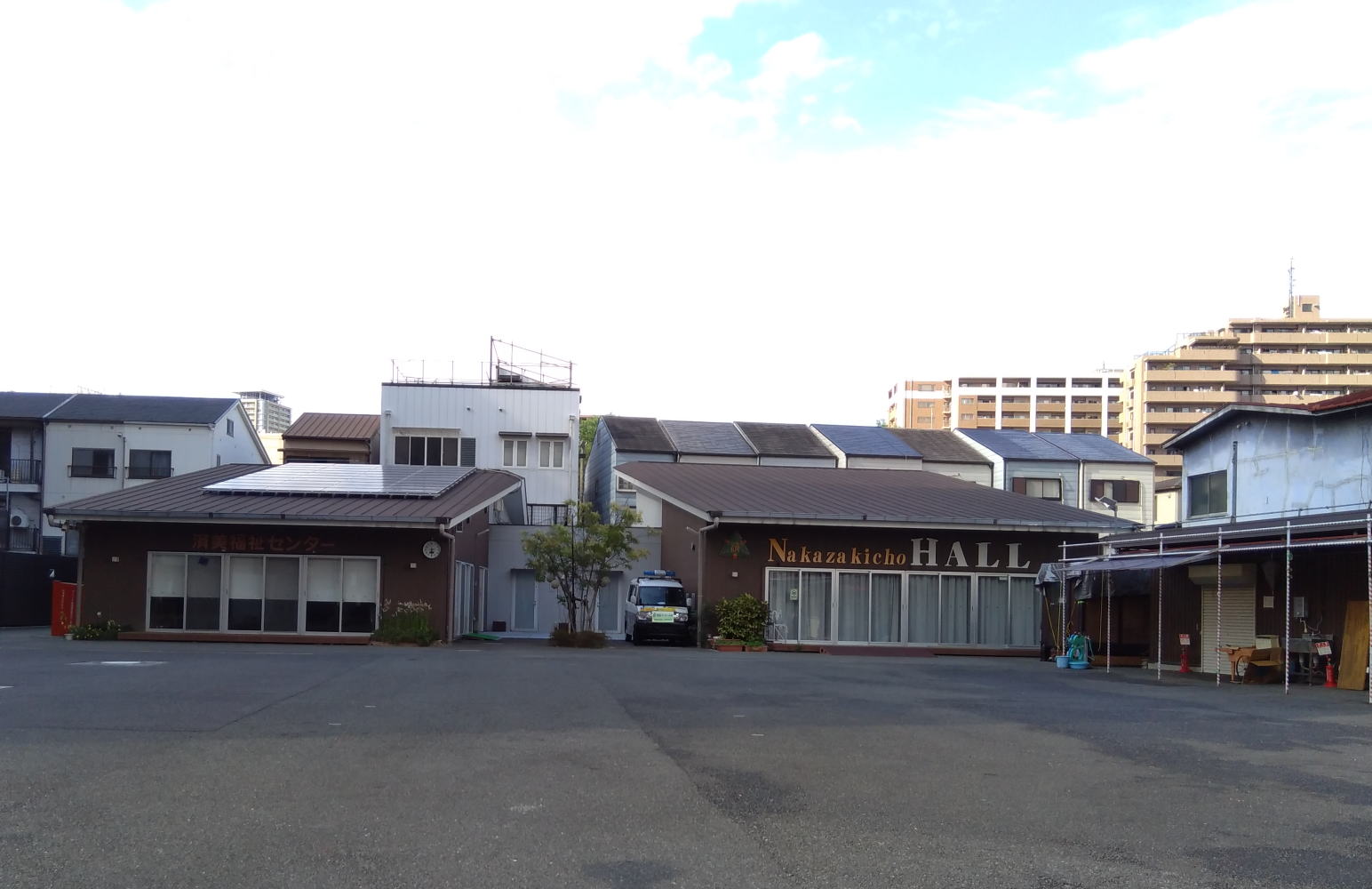 道路から見る「中崎町ホール」。大通りから1本北側の道路沿いです
