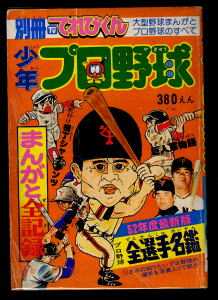 「少年プロ野球 別冊てれびくん」 *収録作品はすべて読切 *全482頁 一峰大二、坂丘のぼる、一大寺鉄(ダイナマイト鉄=斎藤ゆずる)、細井雄二(石森プロ)、寺田ヒロオ ほか小学館(A5判平綴じ厚冊)昭和52年4月15日発行並;角・フチ部少スレ、表紙左下部折れ 裏表紙右上部折れ、表紙・裏表紙しわ、本文の前半下角部と後半上角部若干折れ*全482ページ*別冊ですので収録のマンガは全て読切作品です*収録=「栄光の40年 巨人軍物語」一峰大二・坂丘のぼる(96ページ)、「巨人軍 強さのひみつ」構成:永谷脩/え:下田明紀(写真も有 16ページ)、「なき虫甲子園」一大寺鉄(=ダイナマイト鉄=斎藤ゆずる 110ページ) 、「野球の天才」寺田ヒロオ(50ページ)、 「野球なんでも大百科」構成:舟木秀司/え:飯塚幸作(32ページ)、 「それゆけ!横丁シャイアンツ」細井雄二(=石森プロ 64ページ 青インク)、 「52年度版プロ野球 セ・リーグ パ・リーグ 全選手名鑑」(オール顔写真有 大洋/阪急/クラウンライター/近鉄/南海がまだ在った時代です。 98ページ) 、「プロ野球個人記録集」(12ページ)販売価格=2,600円(2025/10/03 現在の価格です)==================<ご注文&お問合せ先>絶版漫画バナナクレープ〒542-0066 大阪市中央区瓦屋町2-10-14第三天偉ビル4階TEL 06-6765-7144HPアドレス http://www.bananacrepe.net/X(twitter) https://twitter.com/bananacrepeZe-mail bananacrepe@mbk.nifty.com営業日・時間=平日 14:00~20:00/日・祝日 12:00~20:00/水曜定休■今後の「絶版漫画バナナクレープ」出没予定2025年11月15日(土) 初開催されるイベント「大阪アメイジング・ウォーズ」https://macleod.jp/amazing/2025年12月7日(日) 平尾マルシェhttps://www.instagram.com/hirao_taisho_2025/2026年1月18日(日) 次回「レトロはイソゲ」https://www.instagram.com/retr.oatl/