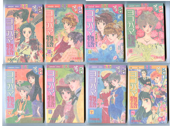 「ヨコハマ物語 全8巻揃い」 大和和紀講談社・KCフレンド(新書判)昭和57年発行の(1)(2)(4)再版・(3)(5)(6)(7)(8)初版並;(1)(3)(4)背上極少しわ、(1)(5)裏表紙左上部若干しわ、(1)本文後半上角部極少折れ・天少汚れ、(2)(5)(6)(7)(8)背上少しわ、(2)背下極少しわ、(6)背上切れ・表紙右上角部極少しわ、(8)背下しわ・カバー上ふち部極少しわ*「週刊少女フレンド」1981年連載*明治時代の横浜が舞台です販売価格=2,600円(2025/3/13 現在の価格です)★【出没イベント】「レトロはイソゲ Vol.4」2025年3月16日(日曜) 13:00~17:00ホテルイルクォーレなんば1Fレストラン「サローネ」にて(大阪市浪速区難波中1丁目15-15)当店は懐かしマンガ、アニメ・特撮関連のほか、絶版プラモデル等も並べる予定です来てね!===========================<ご注文&お問合せ先>絶版漫画バナナクレープ〒542-0066 大阪市中央区瓦屋町2-10-14 第三天偉ビル4階TEL 06-6765-7144HPアドレス http://www.bananacrepe.net/twitter https://twitter.com/bananacrepeZe-mail bananacrepe@mbk.nifty.com営業日・時間=平日 14:00~20:00/日・祝日 12:00~20:00/水曜定休