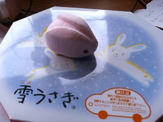 お土産を頂いた。博多銘菓で「雪うさぎ」。箱を開け一つ取り出し包みをそっと開ける、私の楽しみの瞬間だ。どんなお菓子かな?味は?などと何時もワクワクする、まるでコドモ。今回も包みを開くまでノー・イメージで挑んだ。開けてみるとなんともかわいいうさぎの形をしたマシュマロの中に黄身あんが入っている、おいしい。箱の中のお品書きには「雪うさぎ」のお話が書いてある・・・鎌倉時代から伝わる古事で太宰府の崇福寺に伝わるウサギの民話である。ちょっとロマンチック。