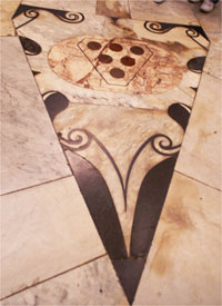 ローマ帝国時代は海軍基地として、12~13世紀には共和国として栄えたピサ。しかし、栄枯盛衰はこの世の法則・・・13世紀後半には衰退の一途をたどりました。15世紀になりフィレンツェの支配下になり、メディチ家が、莫大な資産力でかつて最強の海軍を擁したピサを立て直し、「科学の街」として保護したのです。※あのガリレオ・ガリレイさまはピサ大学出身。大聖堂は、斜塔から眺めると十字の形、白大理石の外観は美しい貝殻のようです。内部はロマネスクとビザンティンが融合し、東方文化の影響が色濃くみられます。黄金の格天井が見事!ここでもしっかりメディチ家の紋章が・・・。追:丸薬、もしくは吸い玉(瀉血に用いる丸いガラス玉)を表す。メディチ家のよな、パトロンが横行する不均衡な世でなければ、芸術と文化を栄えさせることが出来ないのかな。などと複雑な心境になるでありました。