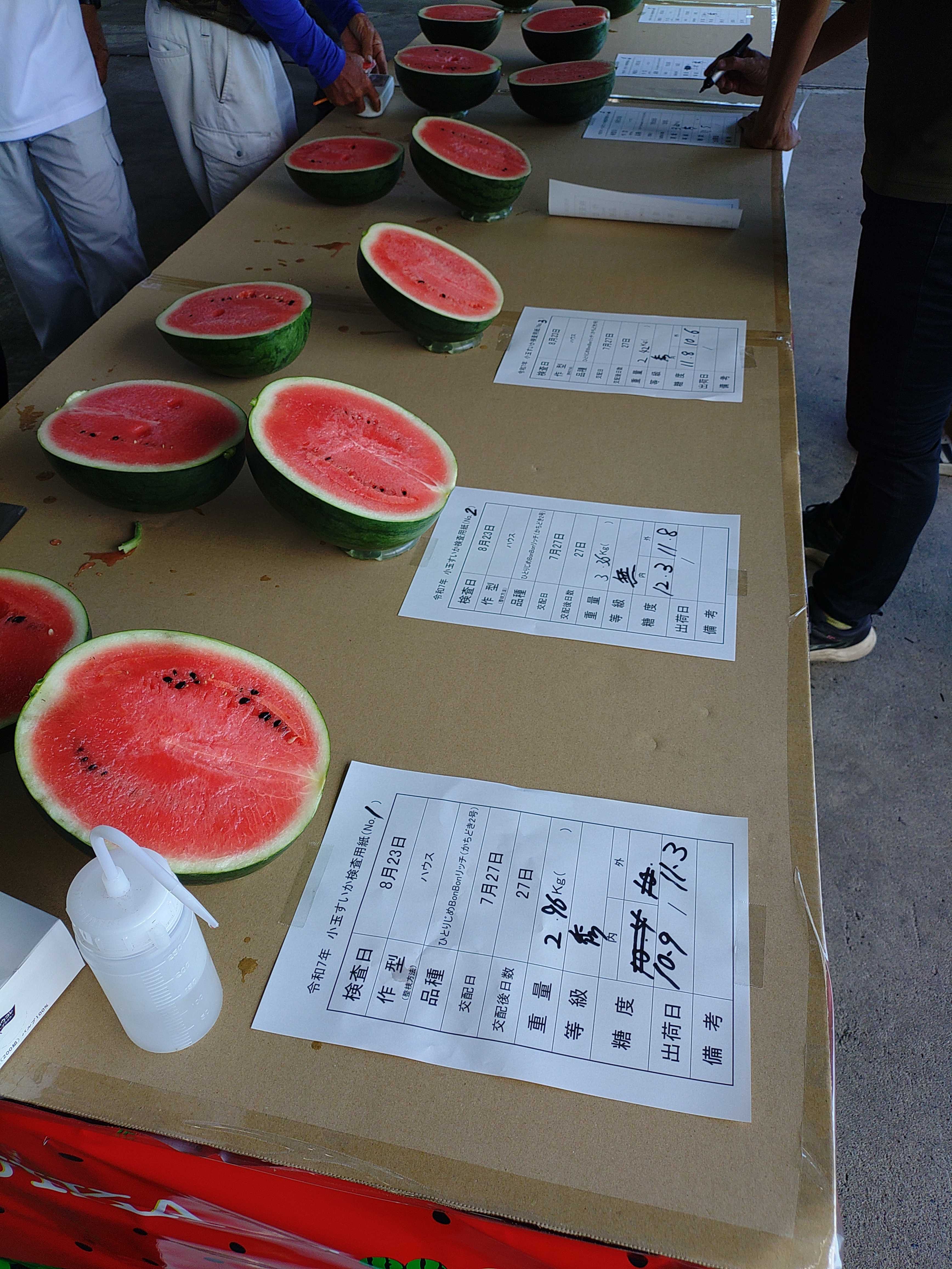 今年も秋の大栄小玉スイカ来週から出荷になりますのでよろしくお願いします今日あった査定会糖度もあるし食味生産者でしましたがとても美味しくできてます販売部長よりそしてブログよりメインがインスタグラムかグーグルマップになってます