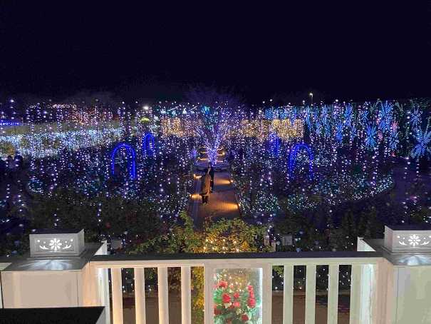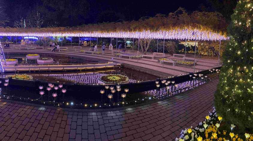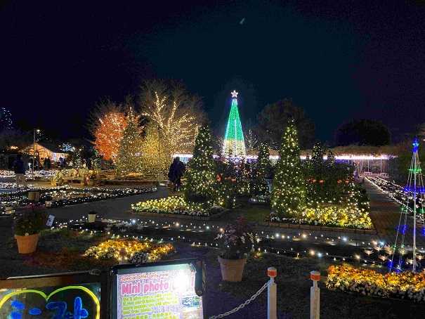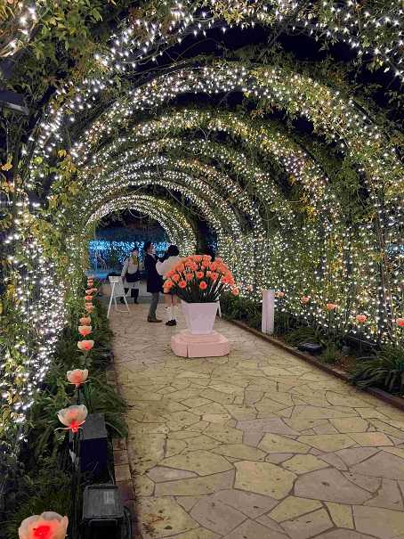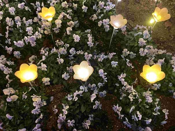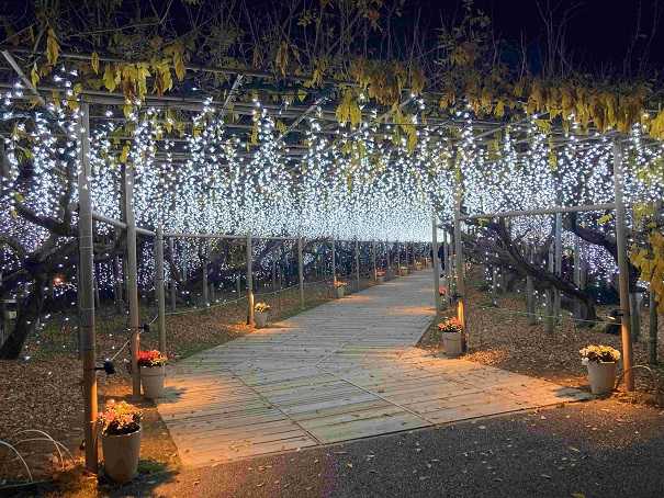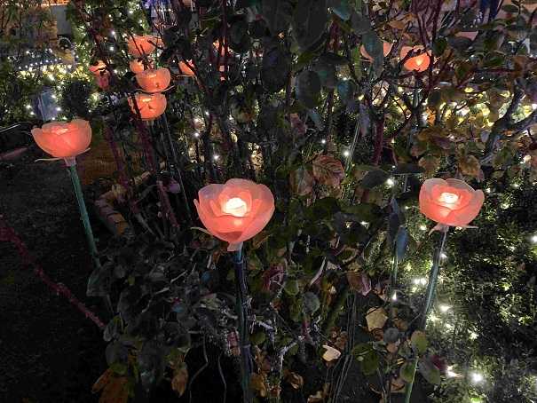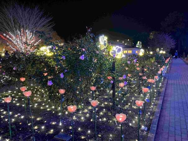 まだバラがたくさん咲いている夜の足利フラワーパーク