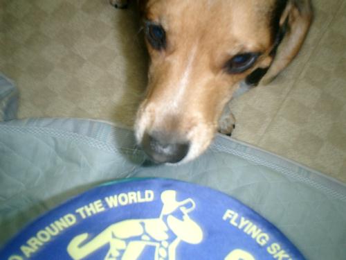 昨日のゼロの行動を、よ~く考えてみました。最初は、タダのわがままで、最近「ご飯くれ!!」コールをすると何かもらえるので、調子に乗っているんだと思っていましたが、、、もしかしたら、ストレスなのかも???あの後、寝ようと3階の寝室へ向かう途中、3階の手前にある4畳の小さな和室の畳の上に、なにやら黒いものが、、、ウン○でした。。。(;_;) しかも、寝室にも、、、日記リンクさせて頂いている「花ちゃん」の日記をふと思い出しました。。。花ちゃんも畳の上に普段はしないのに、そこにウン○が、、、花ちゃんのママさんは、花ちゃんの事で自分が手抜きしているのを訴えていたのだと、日記には書かれていました。もしかして、ゼロも???ゼロの顔を見ると、その時の花ちゃんと同じ顔・・・上目遣いで、おいらが悪いんちゃうもん!!って表情・・・1週間近く夏休みのため主人が家にいて、3人で楽しく暮らしてたのにまた突然、何時間も出て行く。。。なんで???そんな事がストレスになっていたのかも???そして、そのストレスを解消するために食欲へ、、、私の考えすぎかもしれませんが、もしそうだとしたら???罪悪感で一杯になってしまいました。。。どうせこのまま眠れないので、ストレス解消のためにも朝の散歩に出かけました。すこし遠くの公園へ足を伸ばすと、1匹のビーグルが、、、そして、もう1匹ビーグルが、、、 2匹は女の子でお友達のようです。ゼロはワンコが苦手で、すぐに威嚇をするんですが、向こうも負けじと威嚇してきます。。。 するとゼロはタジタジに・・・飼い主さんも、威嚇するゼロを暖かく見守ってくれ、久しぶりに、他のワンちゃんと接することが出来ました。・・・といっても、ゼロは逃げてばかりで、挙句の果てには吼える始末。。。今日は吼え始めてしまったので、公園を後にしましたが、少しずつ慣れてくれたらいいなと思っています。。。2匹の飼い主さん、ありがとうございました♪帰ってきたゼロは、いつもより長い散歩と2匹のビーグルに遊んでもらい?クタクタになって、朝ごはんを食べて寝てしまいました。。。ゼロ、気付いてあげられなくてごめんね♪出来るだけ、朝の散歩もしようと心に決めたずぅでした。