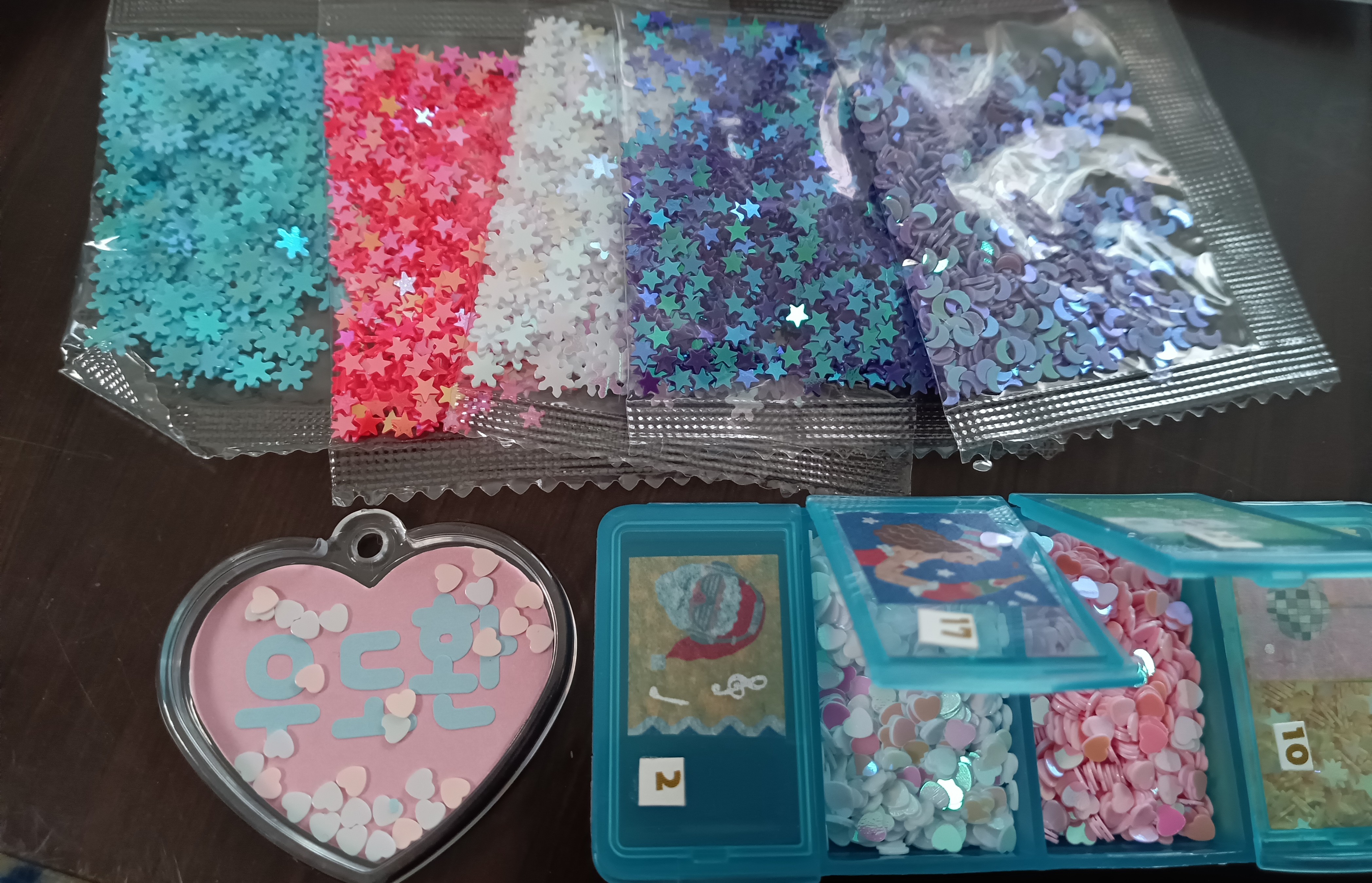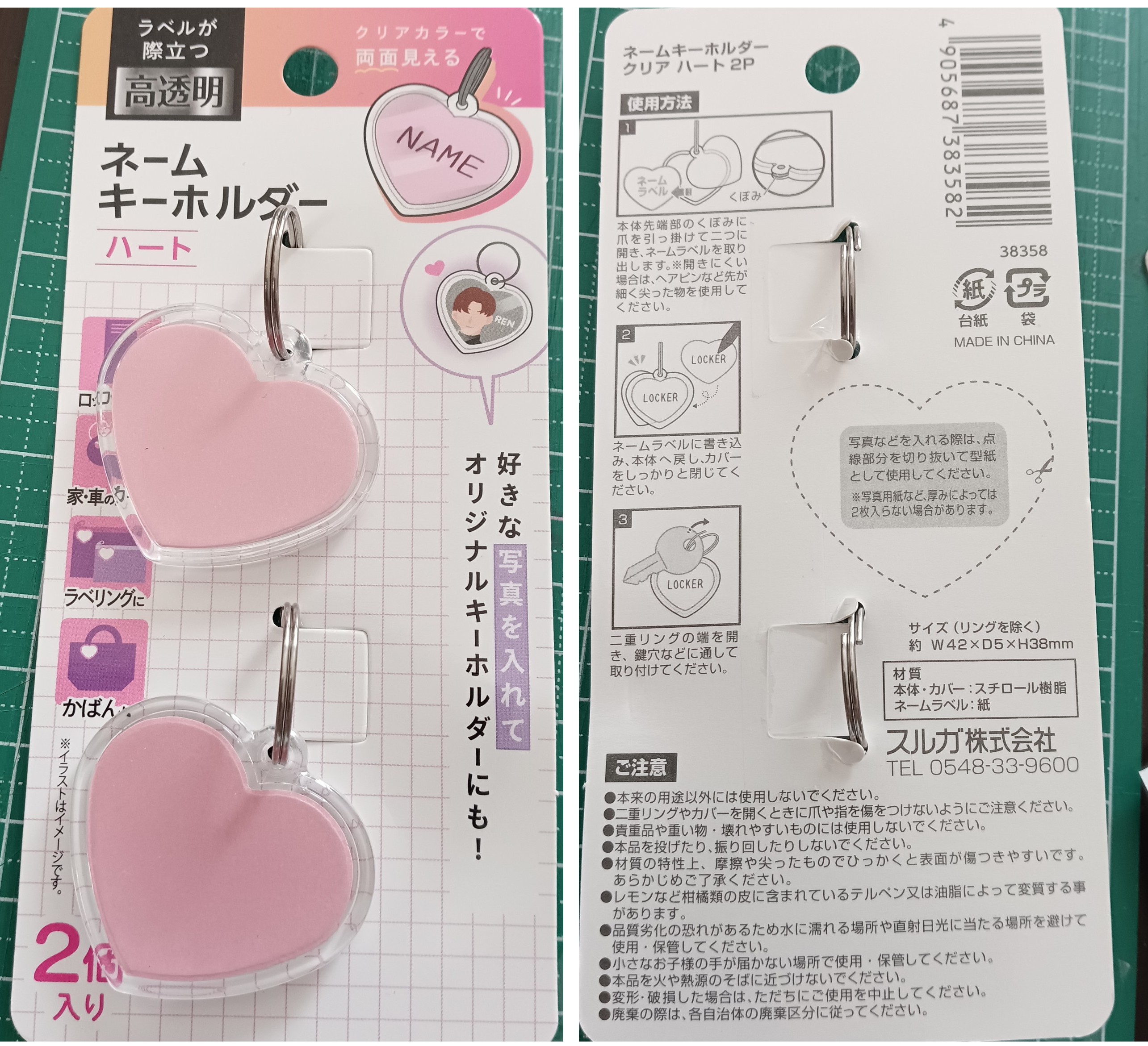 このキーホルダーは付属のリングではなく、昨日ダイソーで買ったゴールドの丸カン&ナスカンで仕上げました。ゲーム柄(?)のアクキーの方は、ボールチェーンを少し短くし、さらに、クリップに丸カンを付けて通す形に。こうすると持ち上げたときもアクキーが真っ直ぐのままで気持ちいい。