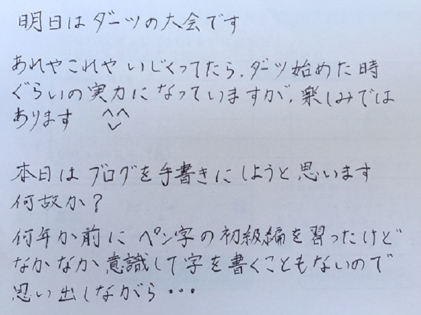 予想通りとゆーかなんと優香手書きメンドくさくなてきたここまでにしますスマホにしてもPCにしても手書きよりは圧倒的に早いこんな便利なもの数年前まで使ってなかったなでもスタート出遅れてるぶん今は結構頻繁に使っているそりゃ字書く機会も少なくなるわなでも今日少し書いてみたら結構楽しかった字を趣味に出来たら安上がりかもでもそこまでの気持ちはなさそうだ明日はブログお休みするかもです、よろしくです