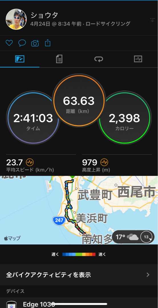 撃沈ドグレロさんが獲得標高1000めーとる獲るとゆうので‥途中でチームタフさんにまぜてもらう💗ドグレロさんは計算通り獲得出来たが同じコース走ったヤマシタは何故かノー獲得^ ^帰り道ドグレロさんにまったくついて行けず坂をゆっくり登りすぎて計測されなかったヨーダwアベレージもドグレロさんとだいぶ違ったwコンビニで死んでたらワンちゃんに顔をクンクンされる^ ^地元のおばあちゃんがパンくれた🍞4つくれたのでドグレロさんが同じく休憩してた若いローディーさん2人組におすそ分け💙で、いろいろお話しさせていただいて結構ご近所だったwドグレロさんはストラバ交換もしてたヨーダ、おばあちゃんが繋いでくれたご縁って感じですね💛今日はロードバイク多かったな〜土曜日か‥そりゃこんないい季節の週末、走らん手はないワナ^ ^しかし久々きつかった^ ^坂めっ💢でもなんかヒジョーに気分がいいドグレロさんあざしたあと結果足つりそうでつらなかったのはおばあちゃんのパンのおかげ💗おばあちゃんあざした