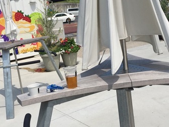 ペダルハウスさん、このパラソル開いてくれました、日蔭ができます