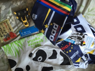 ジャージ持って帰るのに社長にサコッシュもいただいた、サコッシュとはなんぞや?ツールドフランスで仲間に補給ドリンク運ぶ時にいれるやつですか?と社長に聞いてみる、まあそうだと社長