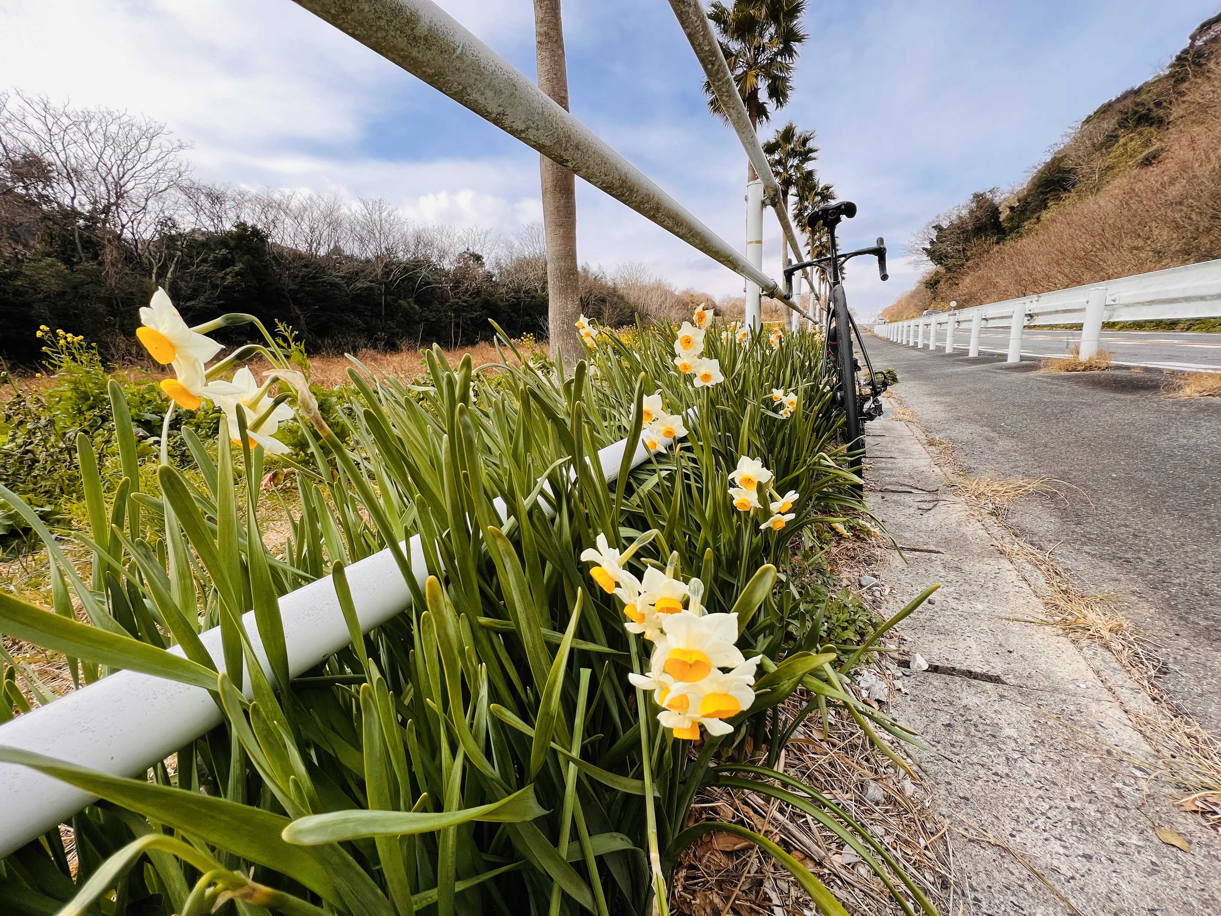 『スイセン、ナノハナ、ヤシ』の道通って帰ります💛