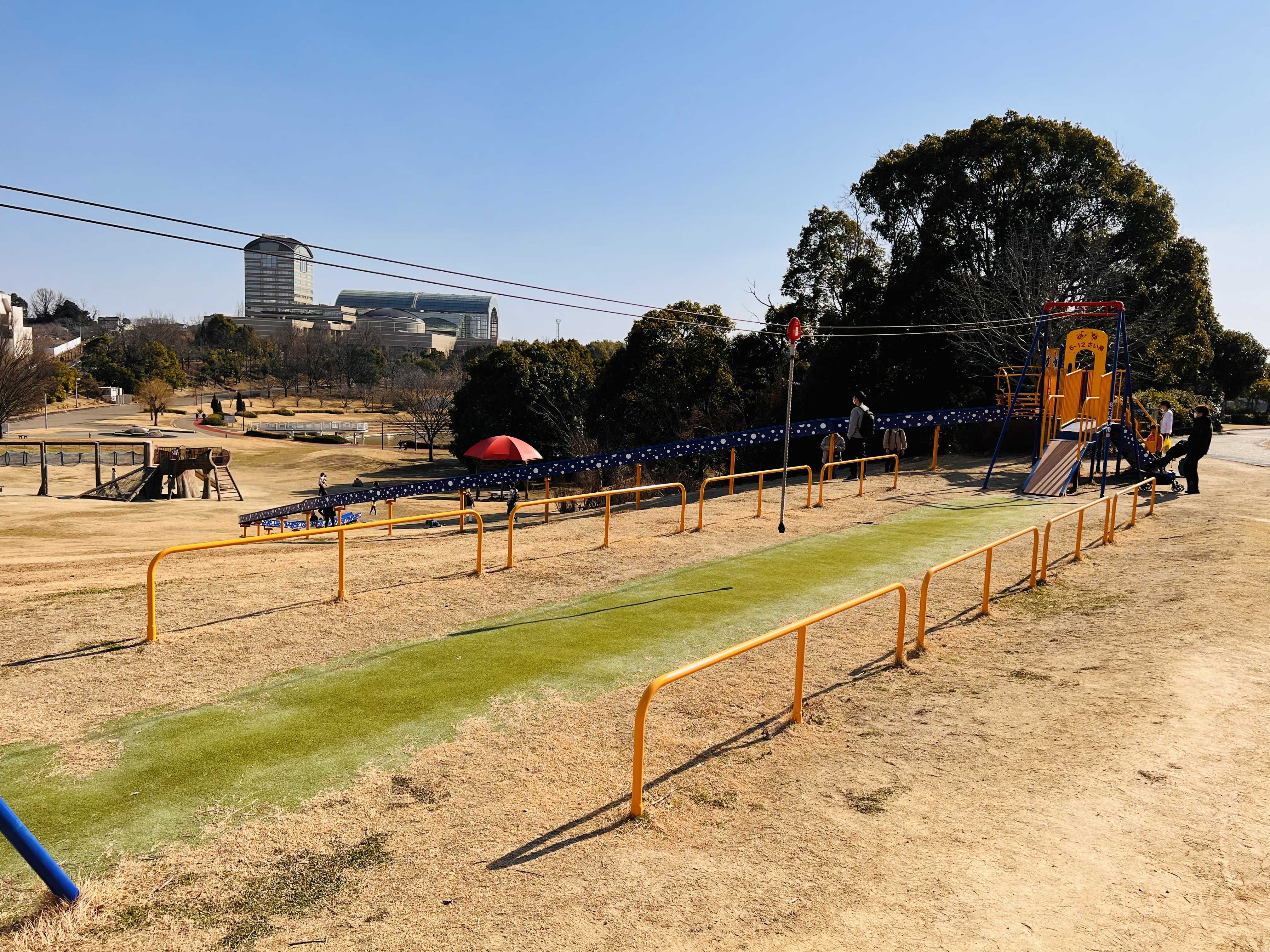 長いすべり台にちっこい子たちが次々と挑んでいた