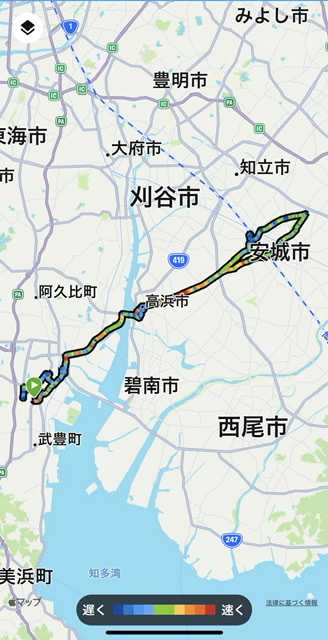 豊田へ行くサイクリングロードを楽しんでいたが何かを察したのか少し手前でUターン^ ^