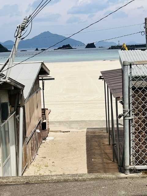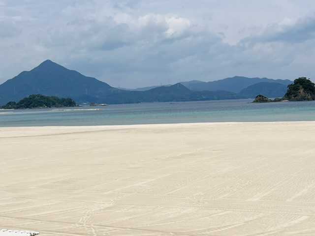 例のiPhoneショボ現象で伝わりづらいですが真っ白な砂浜とエメラルドグリーンの海がヒジョーに綺麗な海水浴場でした👌