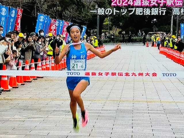 またまた爆速のカリバカロライン選手‼️神村学園のユニフォームでの最後の駅伝だ!