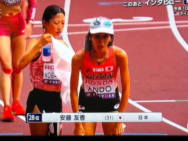 日本チームは暑熱対策スゴかった、解説陣も暑熱対策を連呼していた^ ^中でも彼女は徹底してた、ガチ早稲田法学部だし頭もいいのだろう、マラソン脳とゆうかレースリテラシーが高すぎる^ ^