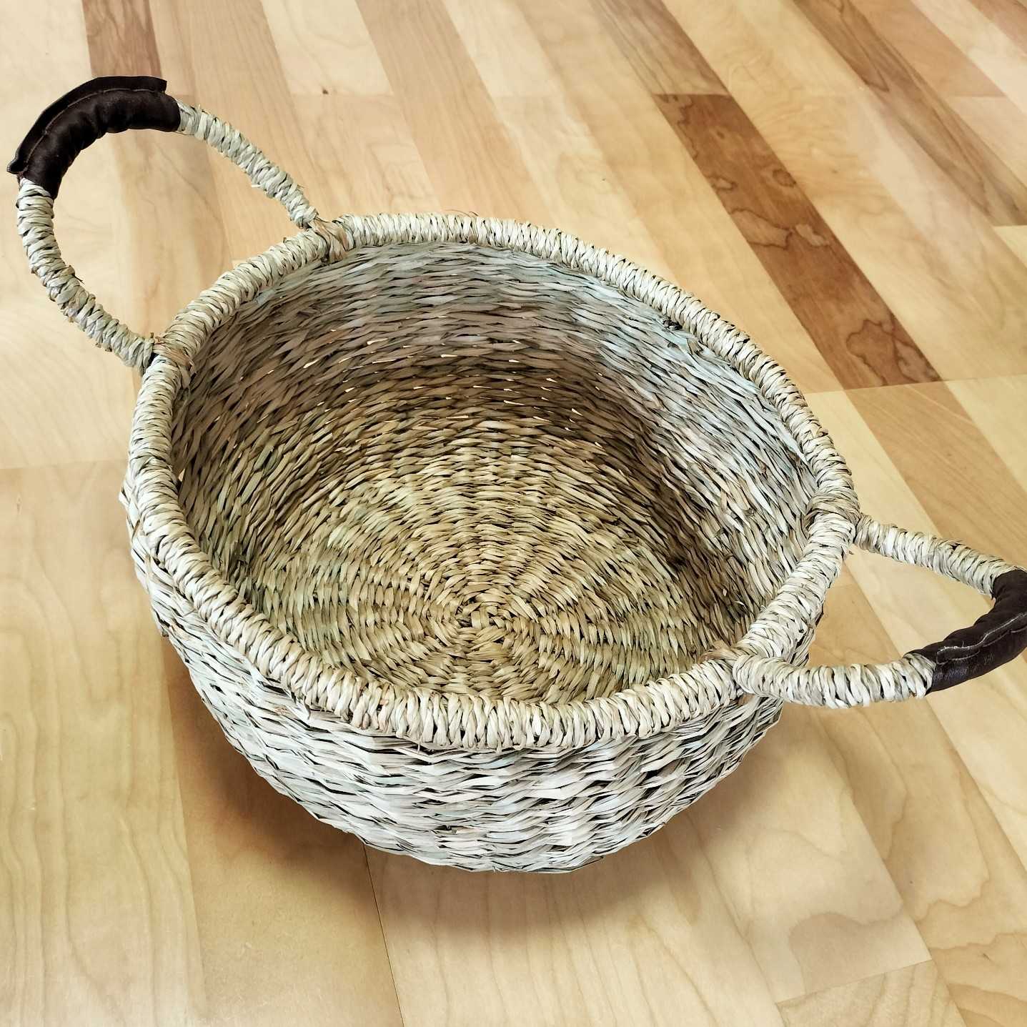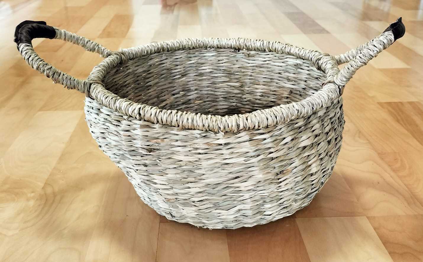 【訳あり】 返品交換不可 北欧風ワンハンドルラウンド型ウッドチップバスケット M...