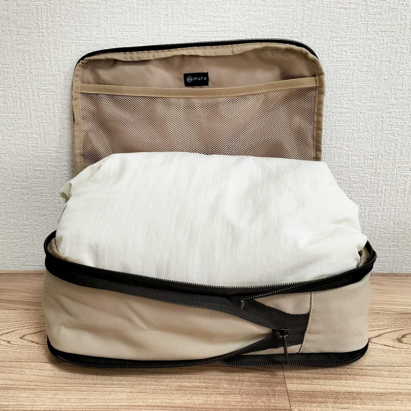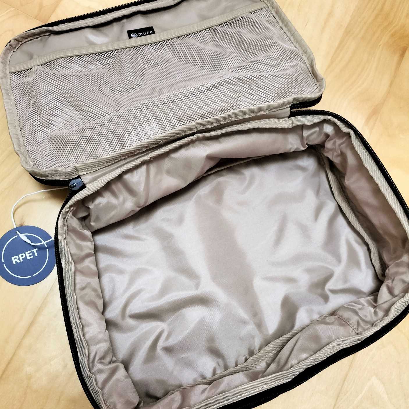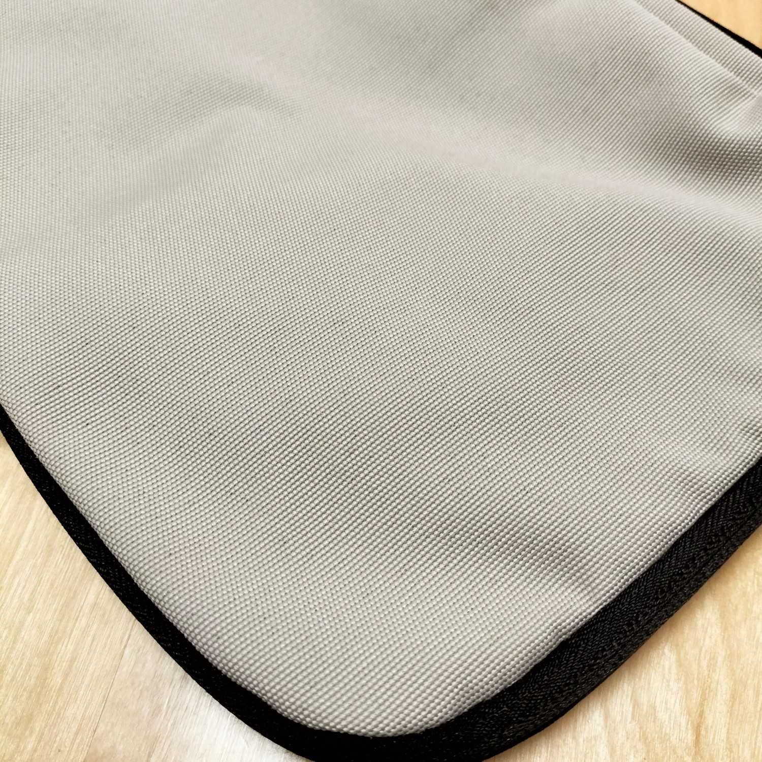 工場に確認いたしましたところ、こちらの商品の素材が再生ポリエステル(プラスチック廃棄物のリサイクル)を使用しており、通常の布とは少し形状が違うため、今回ご指摘をいただきましたシミのように見えることもR-PETシリーズでは通常となります。